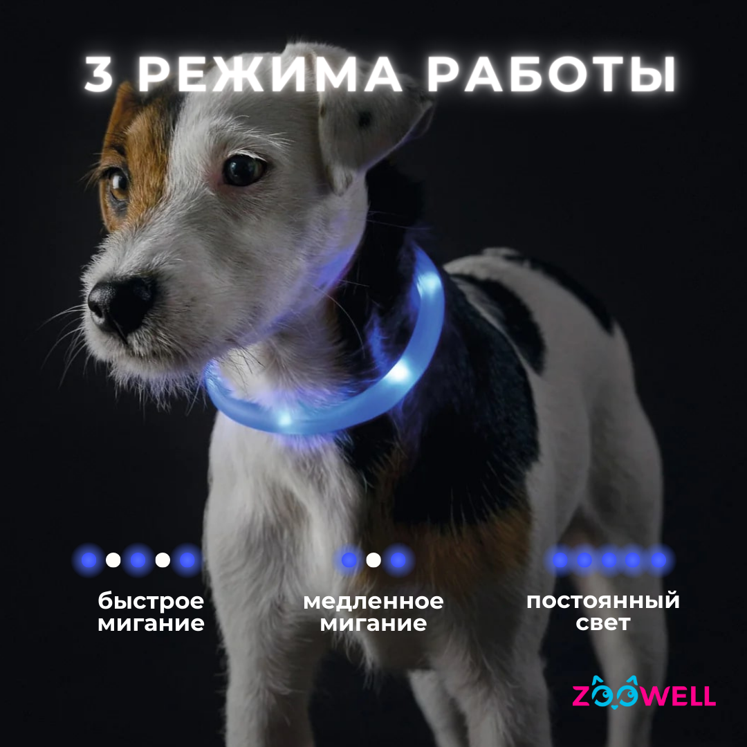 Ошейник светящийся для собак LED, 55см, для выгула в темное время суток ZOOWELL
