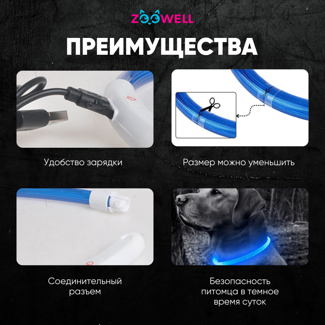 Ошейник светящийся для собак LED, 55см, ZOOWELL