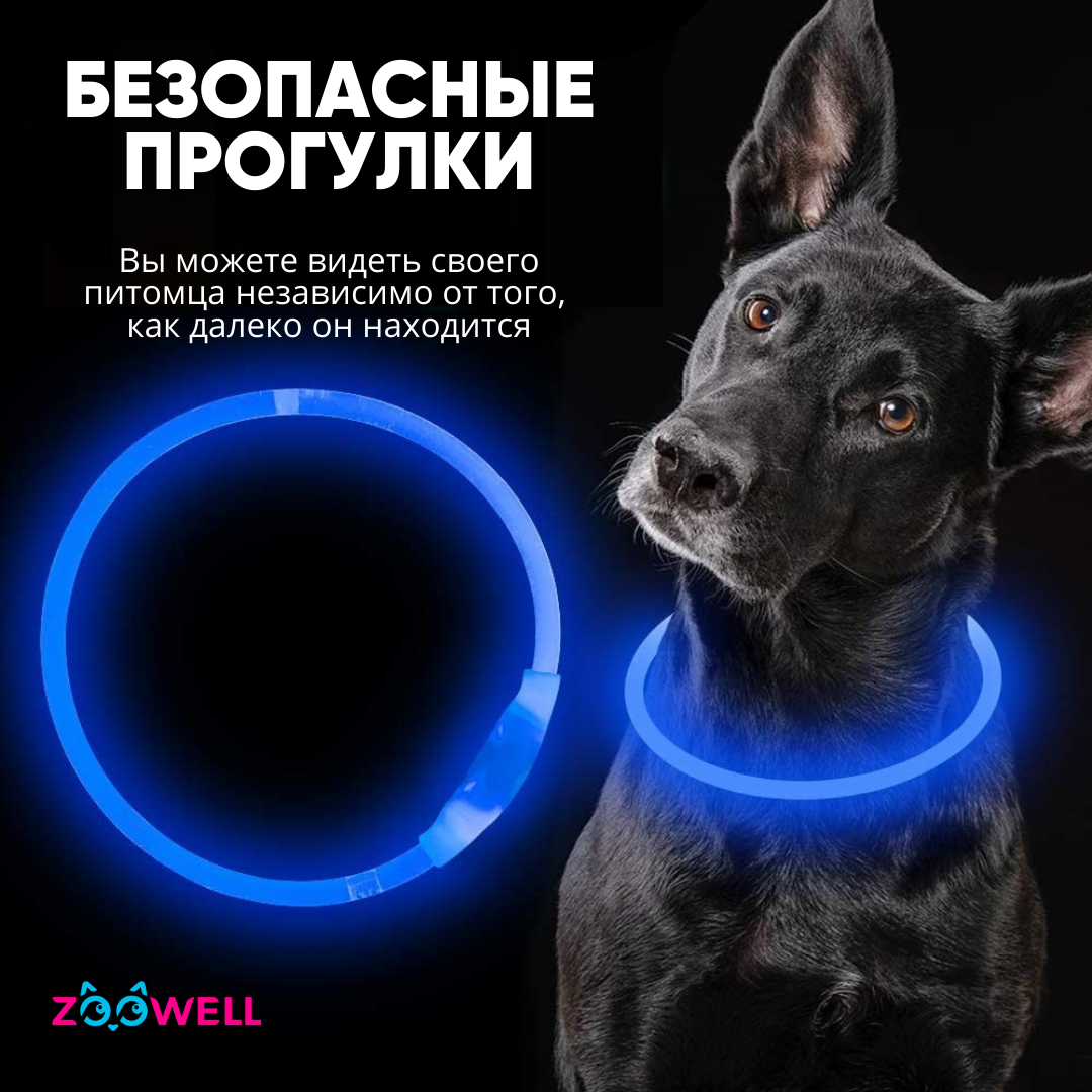 Купить Ошейник светящийся для собак LED, 55см, для выгула в темное время суток ZOOWELL
