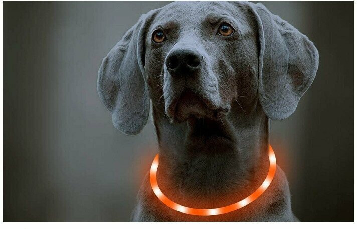 Ошейник светящийся для собак USB оранжевый 70 см L
