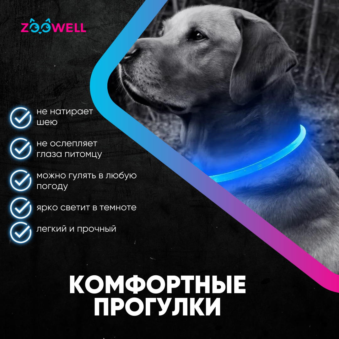 Ошейник для собак/ светящийся ошейник/ собачий ошейник 40см голубой, ZOOWELL