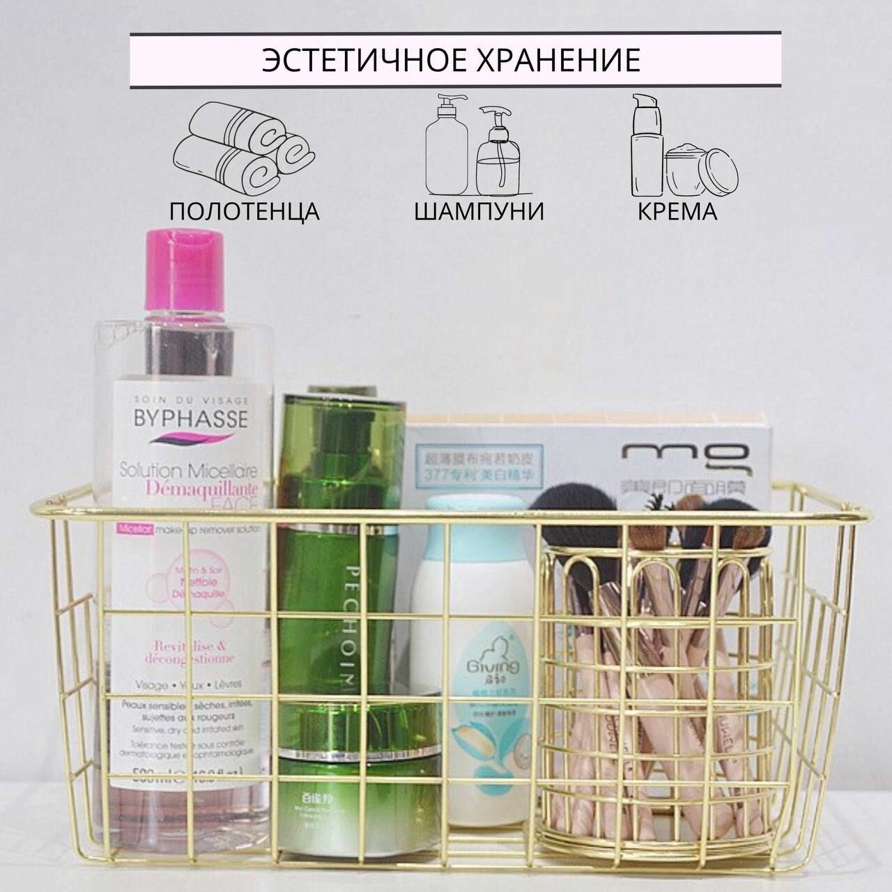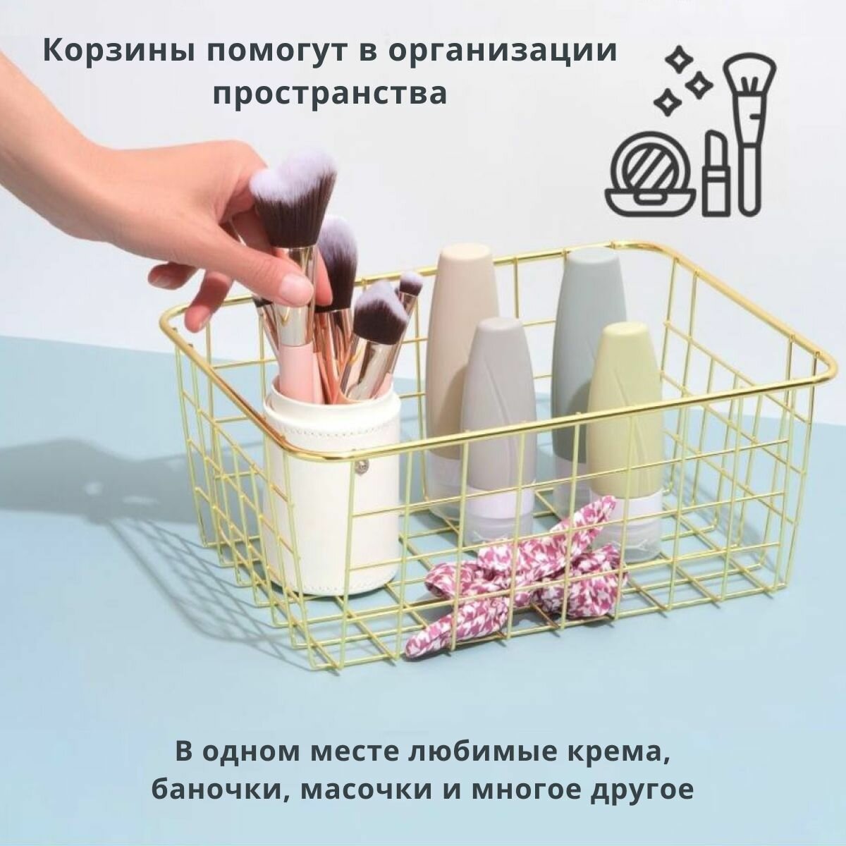 Корзина для хранения, органайзер для косметики, мелочей для ванной или кухни 28х22х11,5 см ZALUCHE