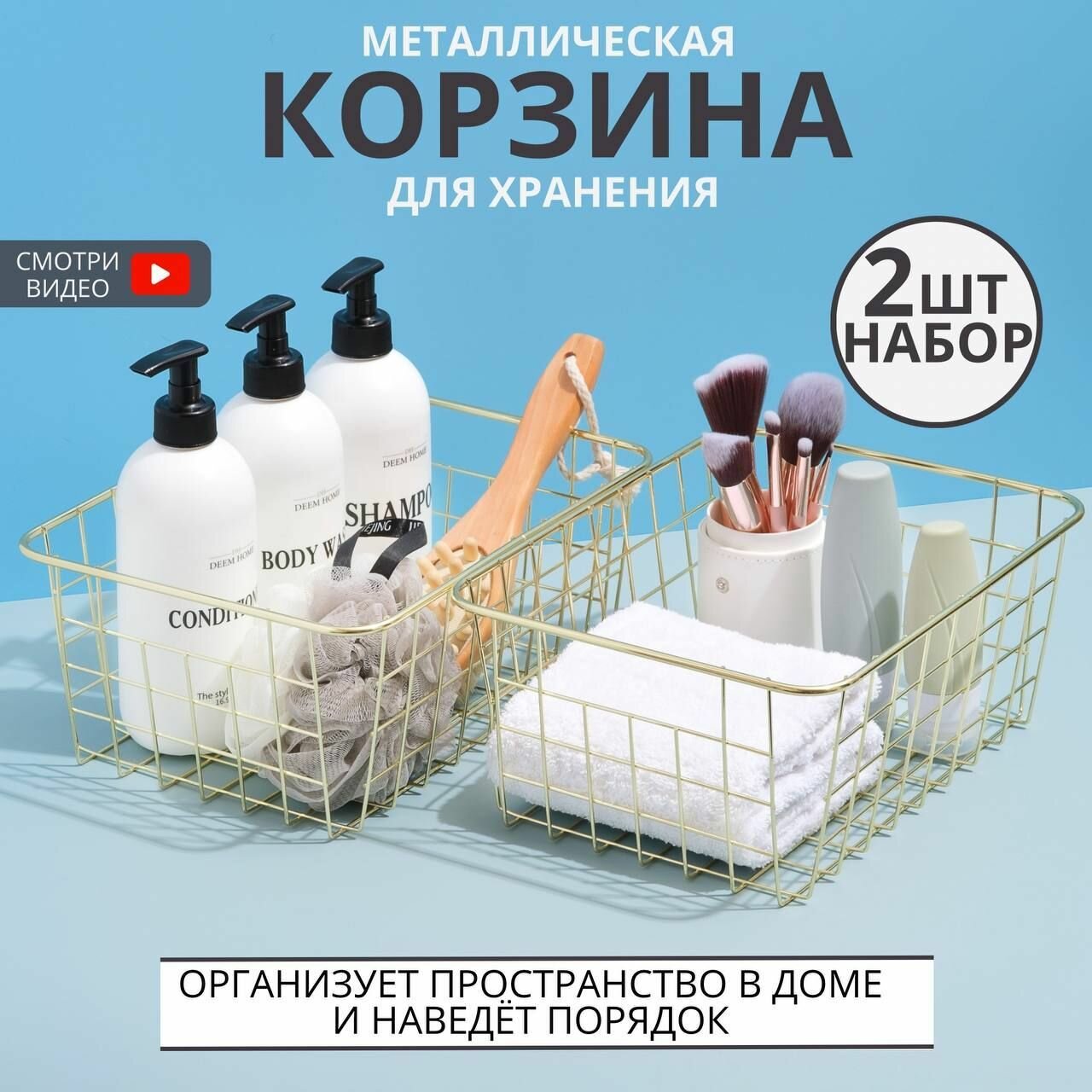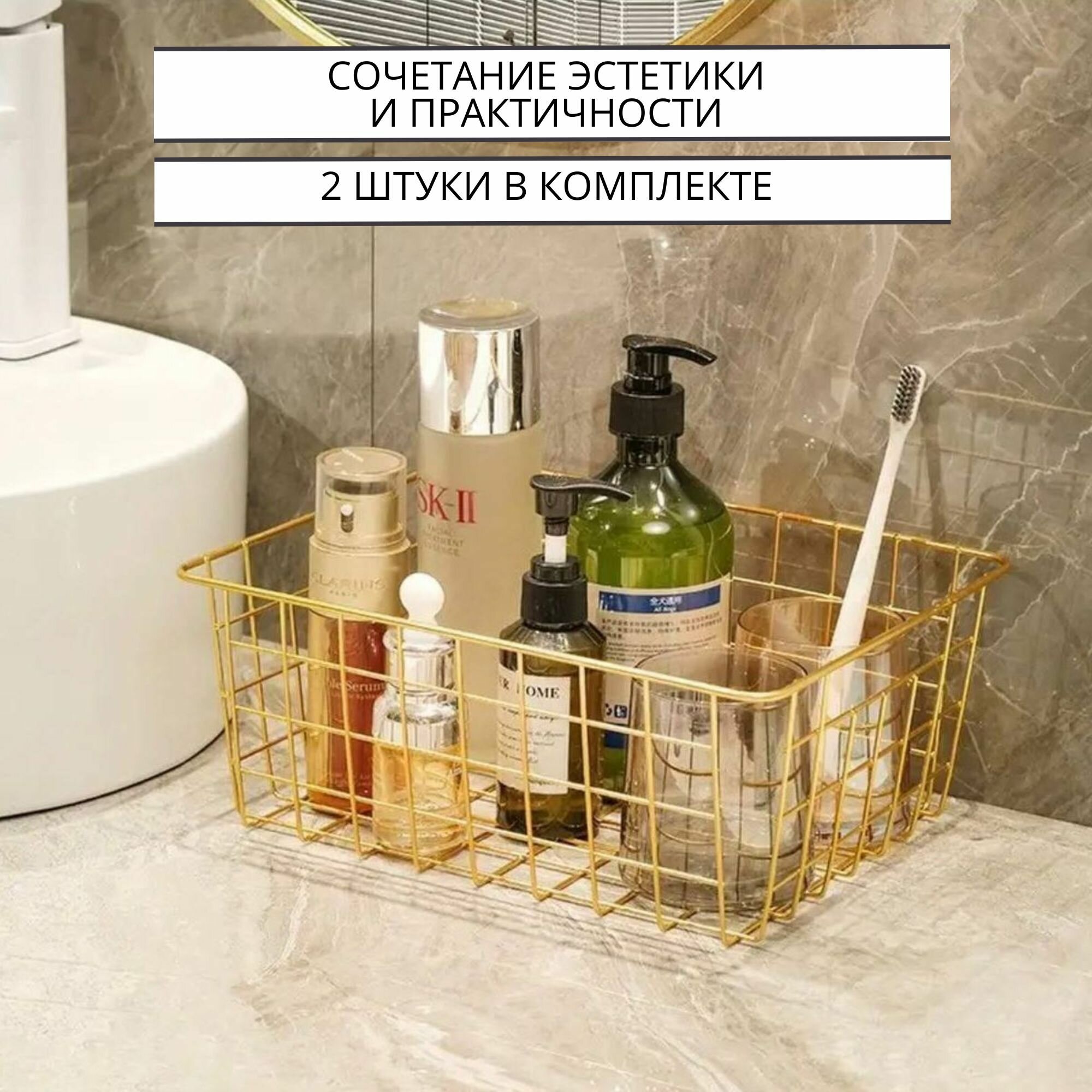 Корзина для хранения, органайзер для косметики, мелочей для ванной или кухни набор 2 шт. 28х22х12 см ZALUCHE интересное: