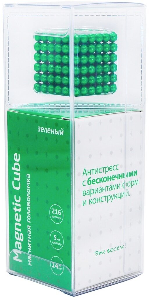 Купить Головоломка магнитная Magnetic Cube, зеленый, 216 шариков, 5 мм, неокуб, антистресс
