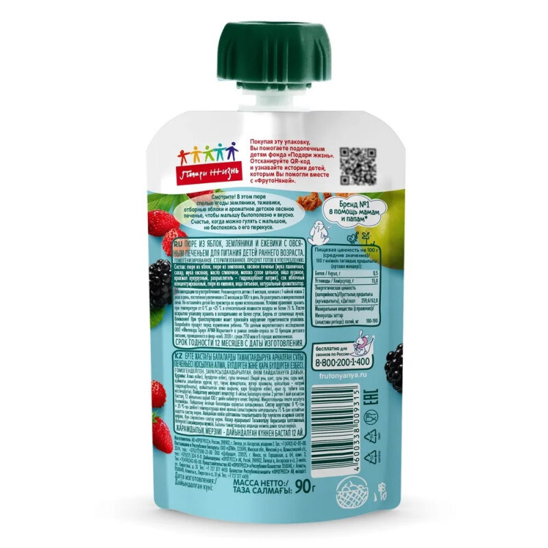 Пюре Фрутоняня из яблок земляники и ежевики с овсяным печеньем с 6 мес 90 г (12 штук в упаковке) (пауч) интересное: