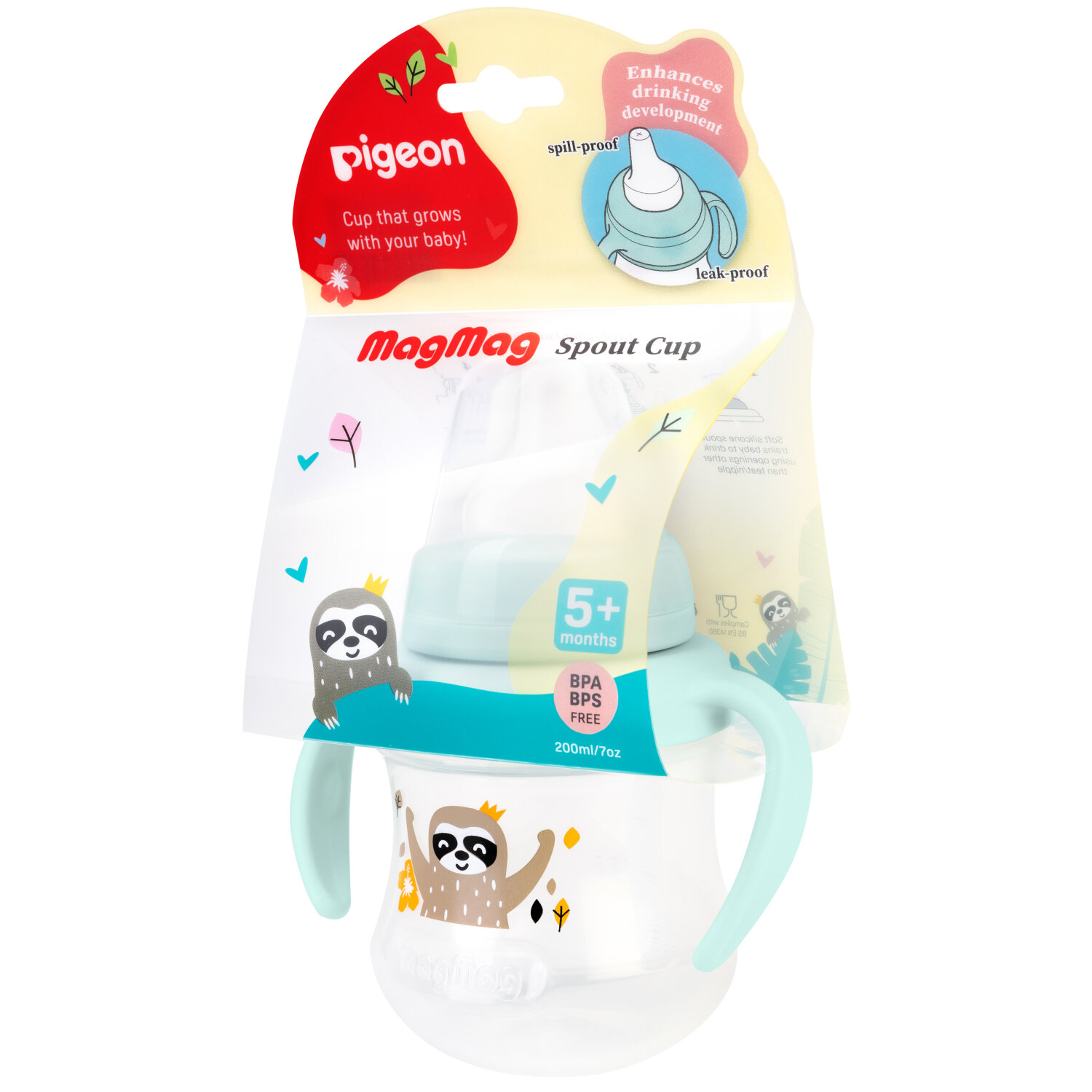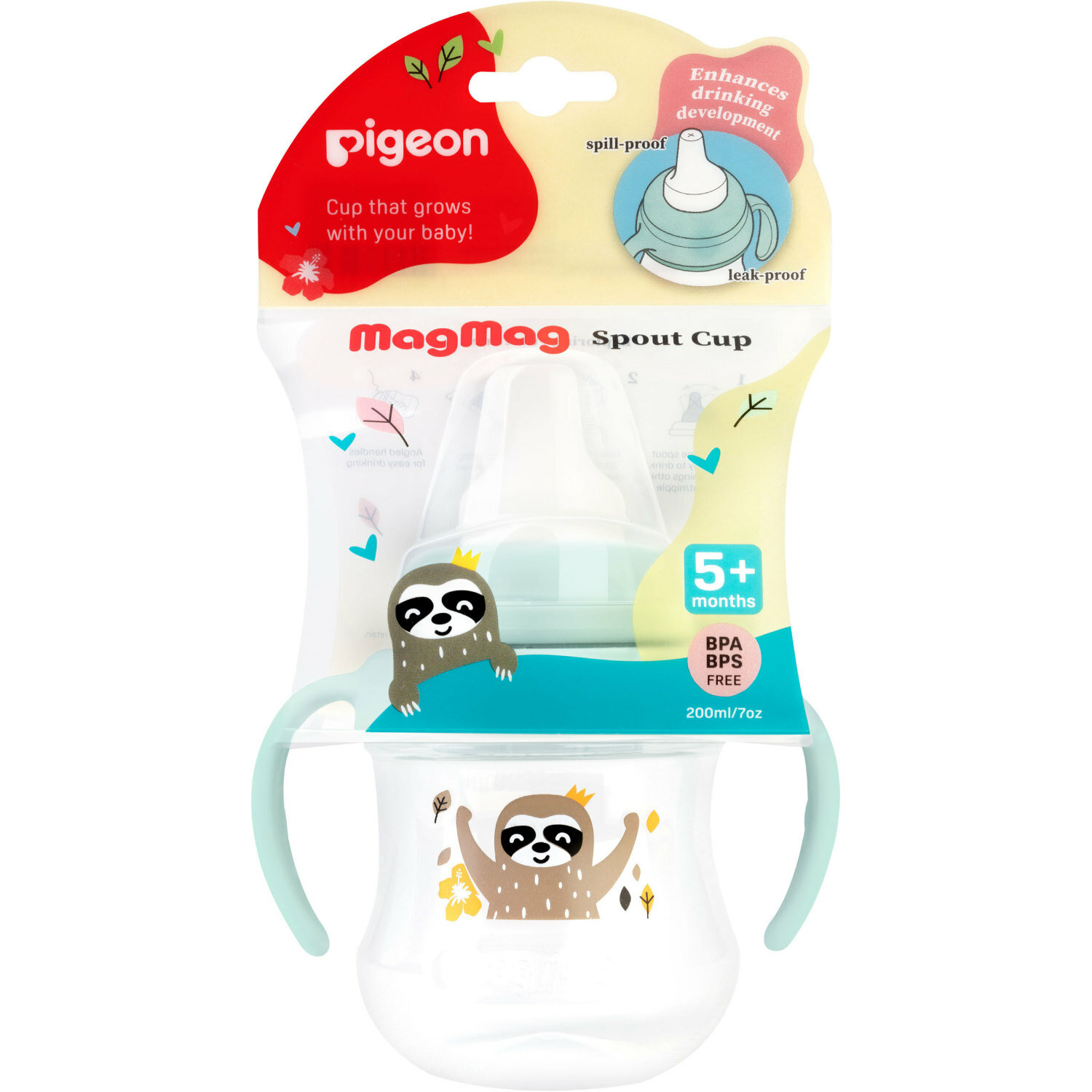 Купить Поильник Pigeon MagMag Ленивец с мягким носиком 200мл с 5месяцев