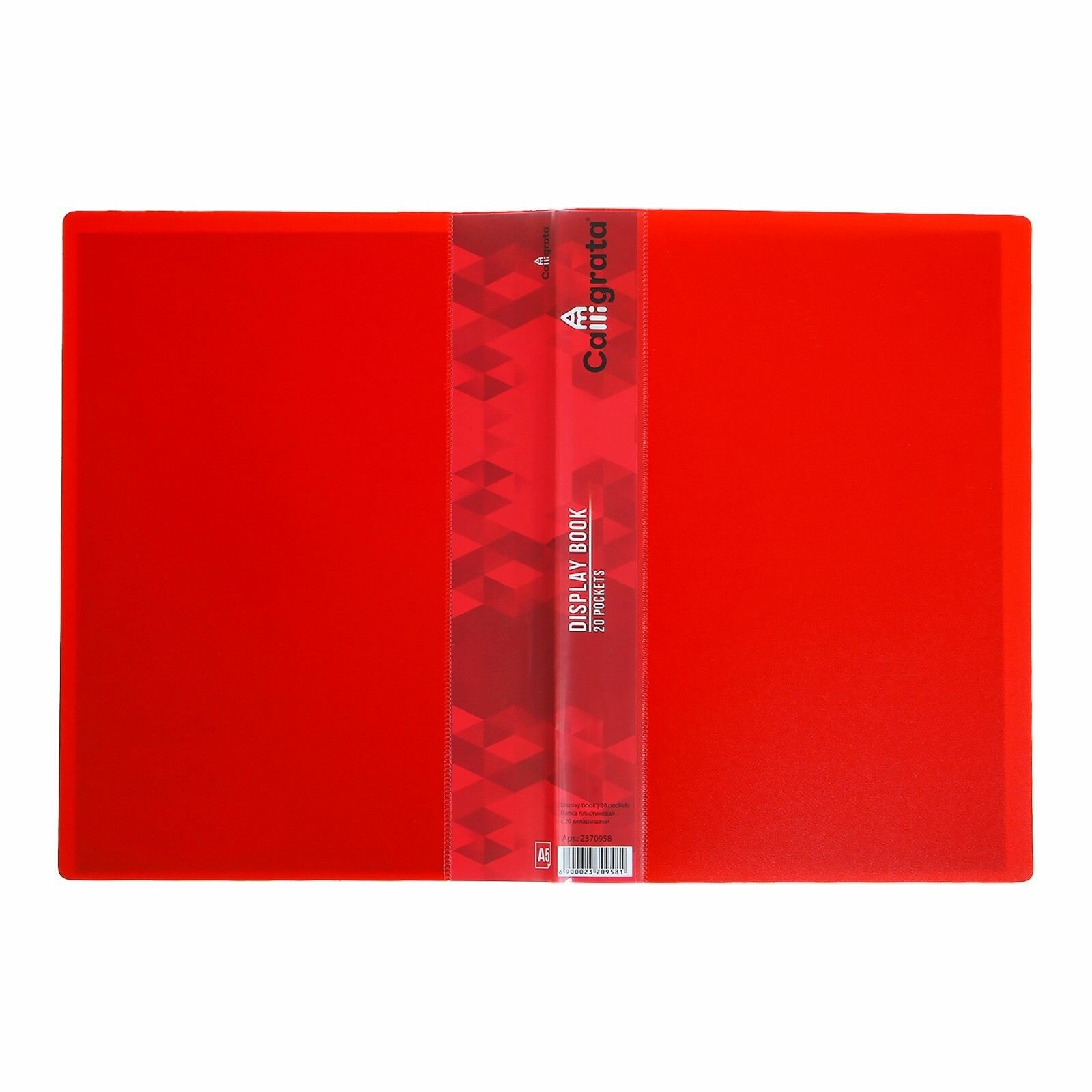 Папка с 20 вкладышами А5, 500 мкм, Calligrata, 9 мм, карман на корешке, красная