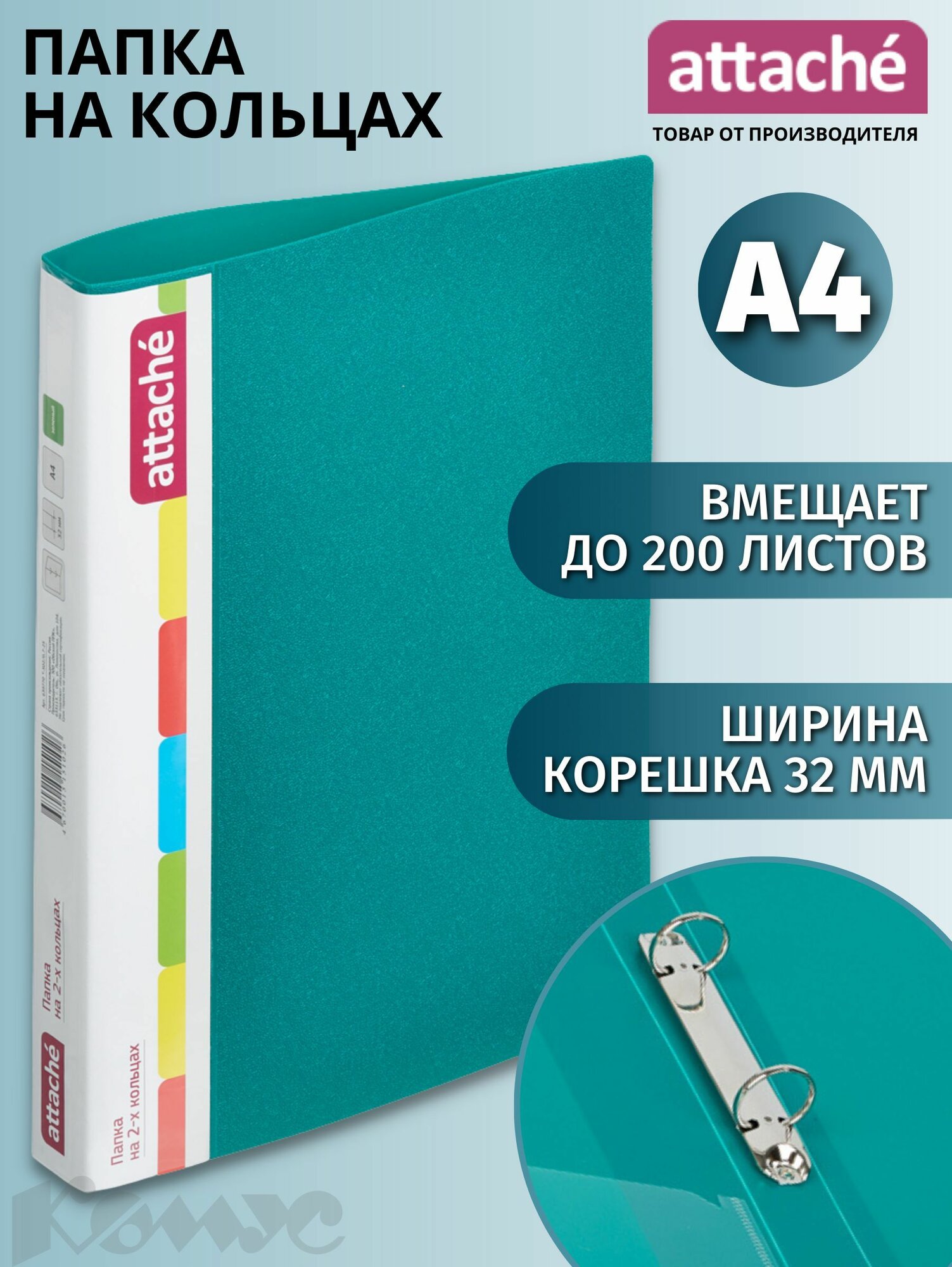 Папка для документов на кольцах Attache, А4, корешок 32 мм, до 200 листов