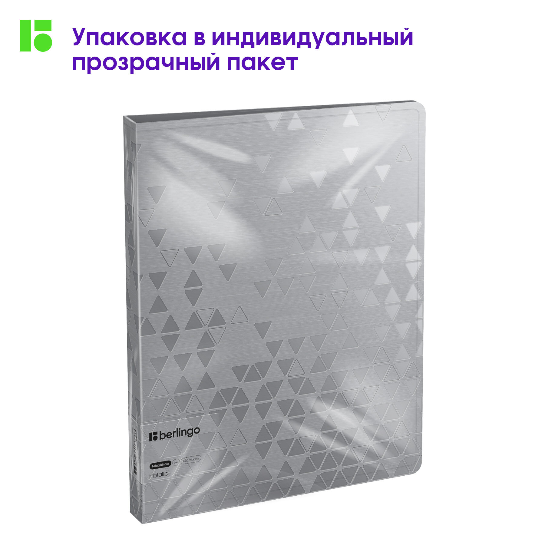 Папка на 4 кольцах с внутр карманом Berlingo Mettalic А4 24мм 1000мкм серебряный металлик RB4_4D396