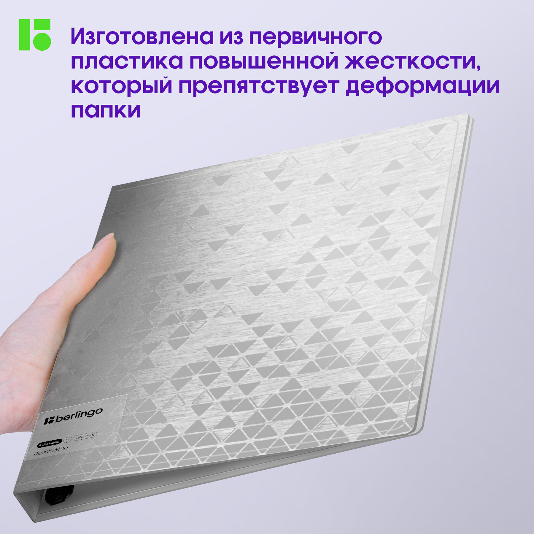 Папка Berlingo "DoubleWhite", 24 мм, 1000 мкм, белая, на 4 D-кольцах, с внутренним карманом (RB4_4D397)