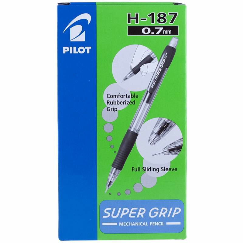 Карандаш механический Pilot H-187 Super Grip (0.7мм, с ластиком, резиновая манжетка, корпус черный) 12шт. (H-187-B)