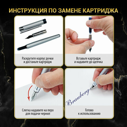 Ручка подарочная перьевая BRAUBERG Brioso, синяя, корпус черный с золотист., линия 0,25мм, 143467