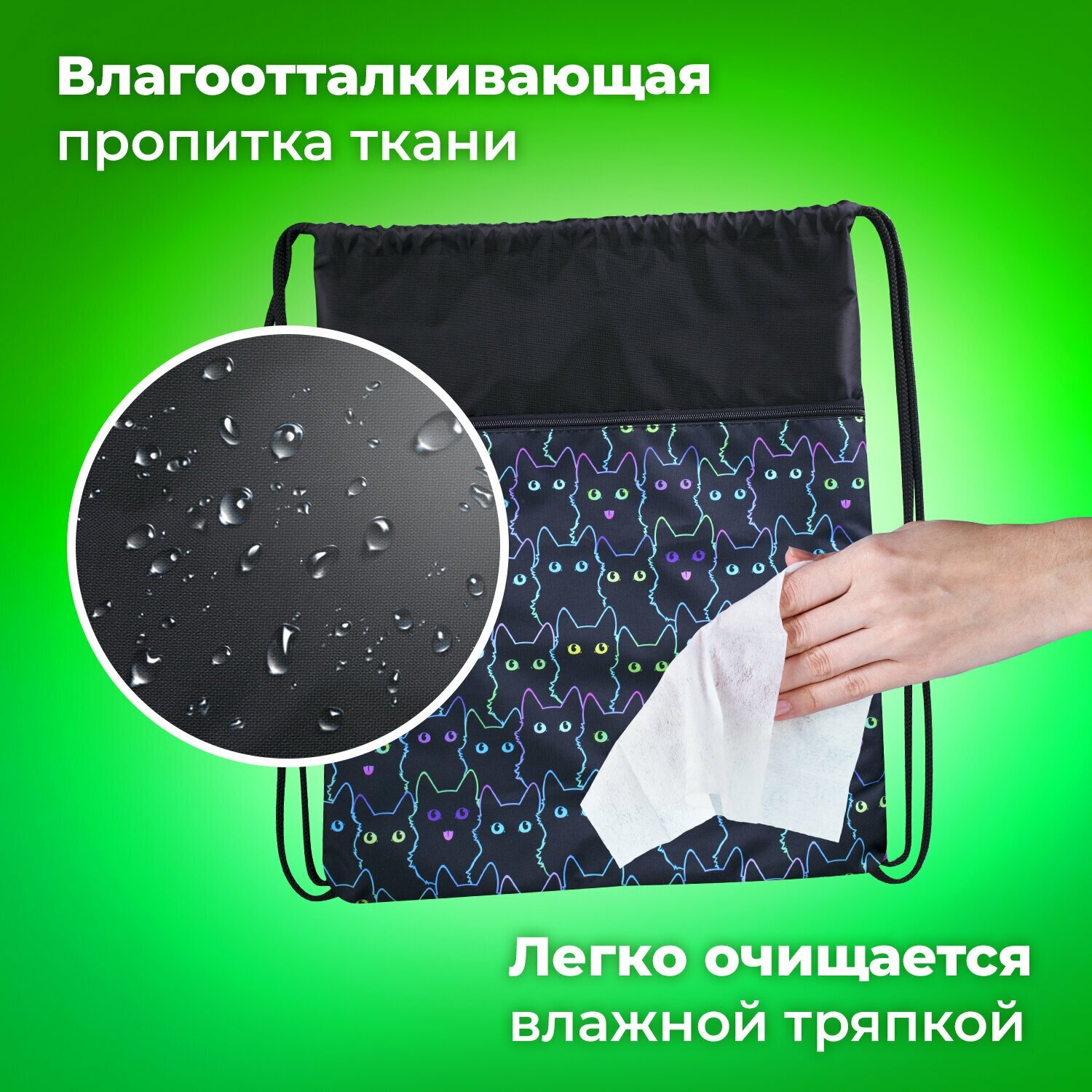 Сумка / мешок / рюкзак для сменной обуви (сменки) Brauberg, карман на молнии, с ручкой, сеточка для вентиляции, 51х41 см, Cats