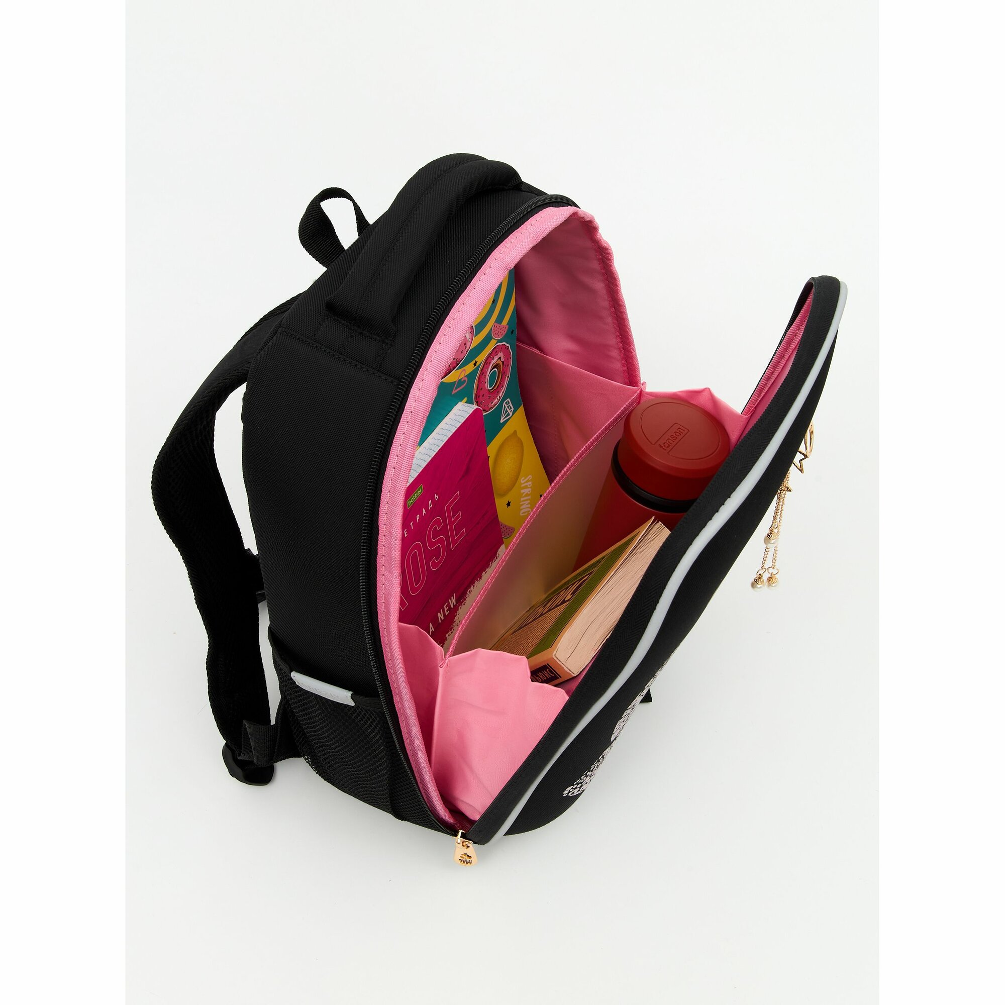 Ранец каркасный, 37 х 26 х 16 см, Grizzly, + брелок, чёрный/золотой