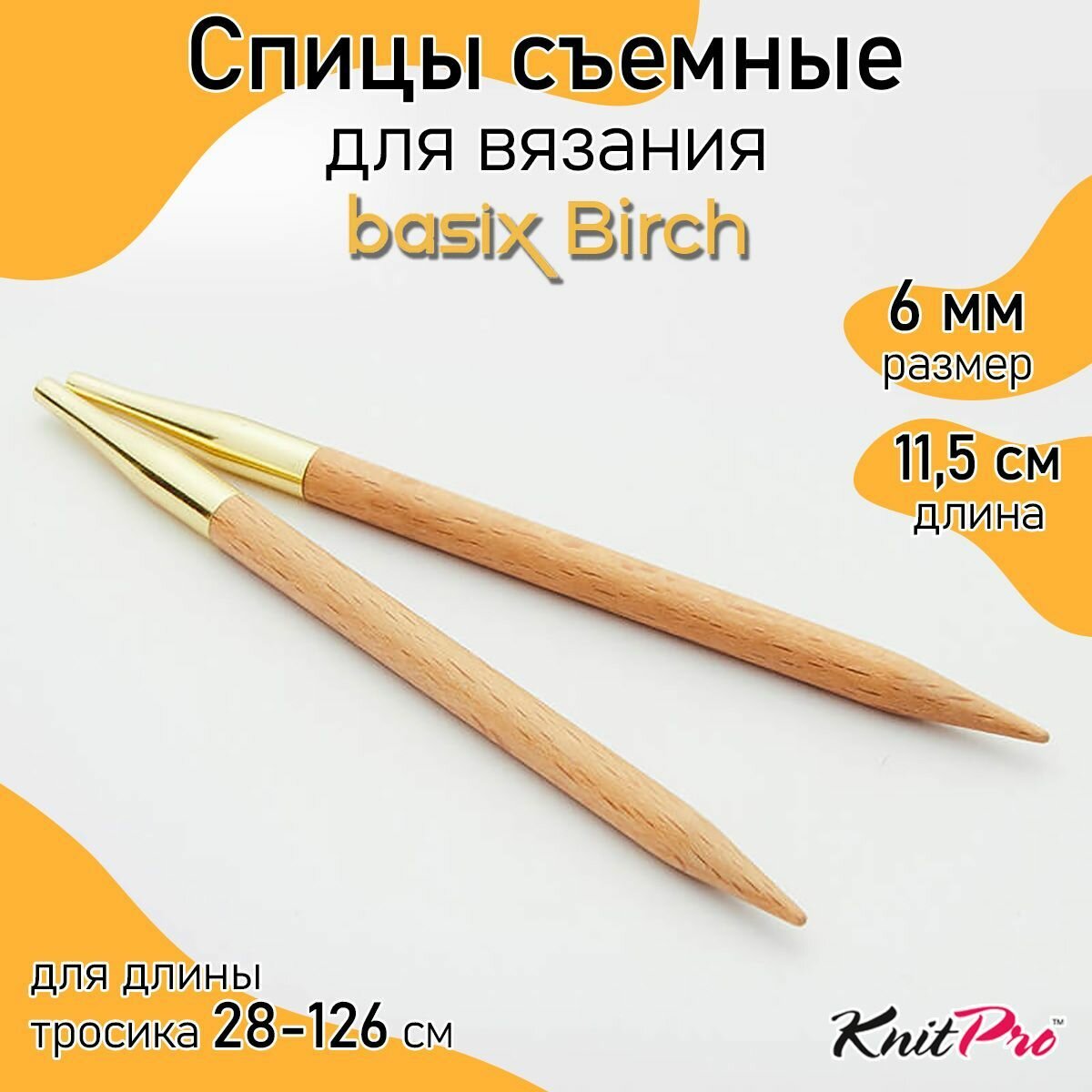 Спицы съемные Knit Pro Basix Birch, 6 мм, для длины тросика 28-126 см, береза, натуральный, 2 шт (KNPR.35639)