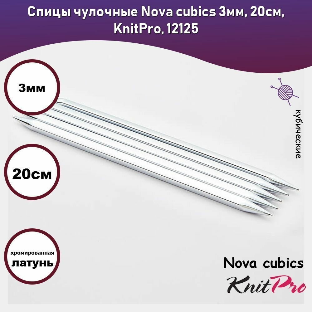 Спицы чулочные Nova cubics 3мм/20см, никелированная латунь, серебристый, 5шт в упаковке, KnitPro, 12125