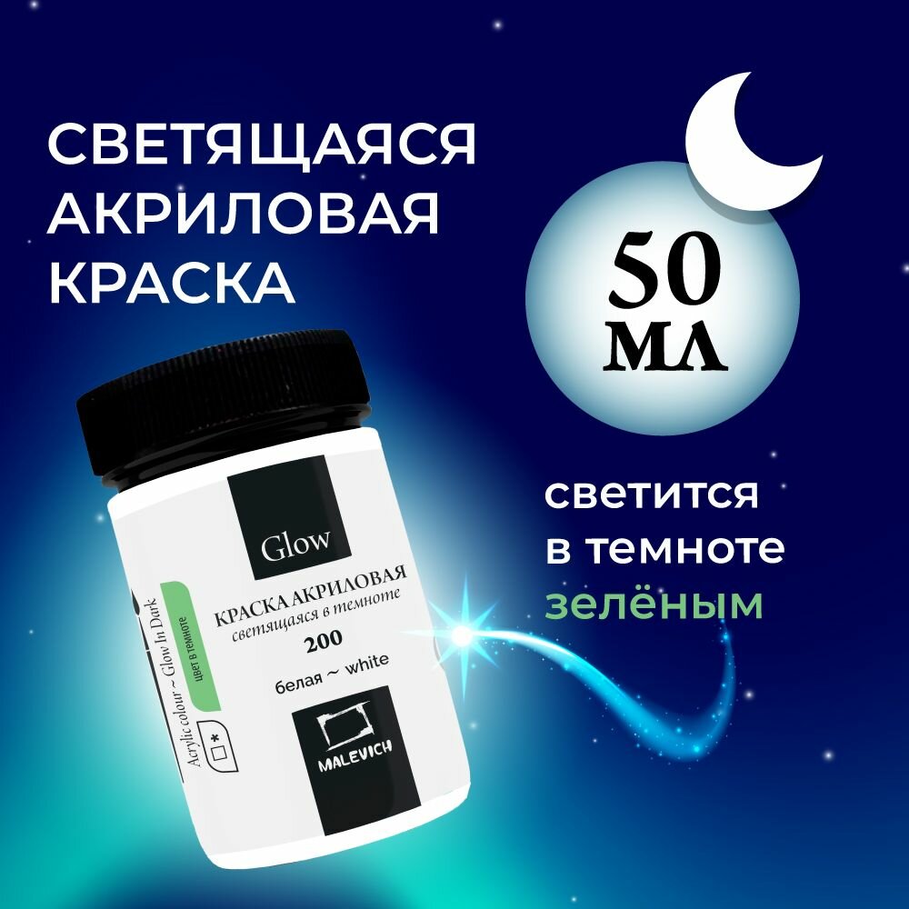 | Комплектация | Акриловая краска Малевичъ Glow светящаяся в темноте - 1шт. |