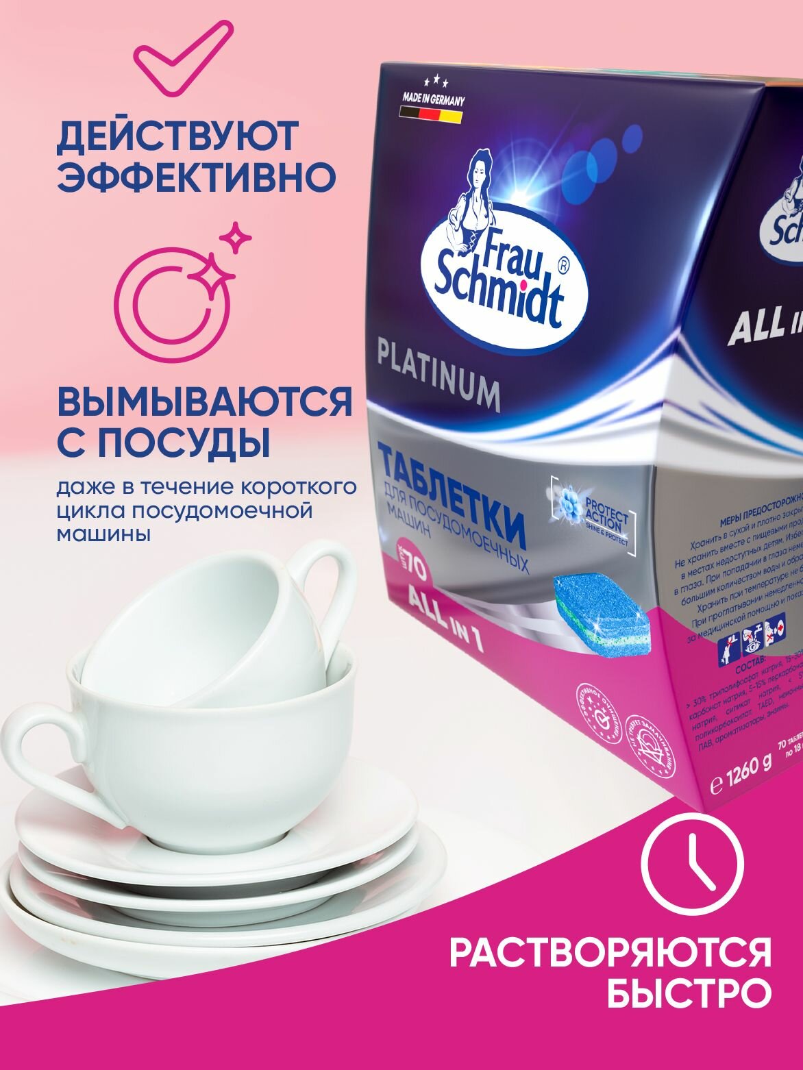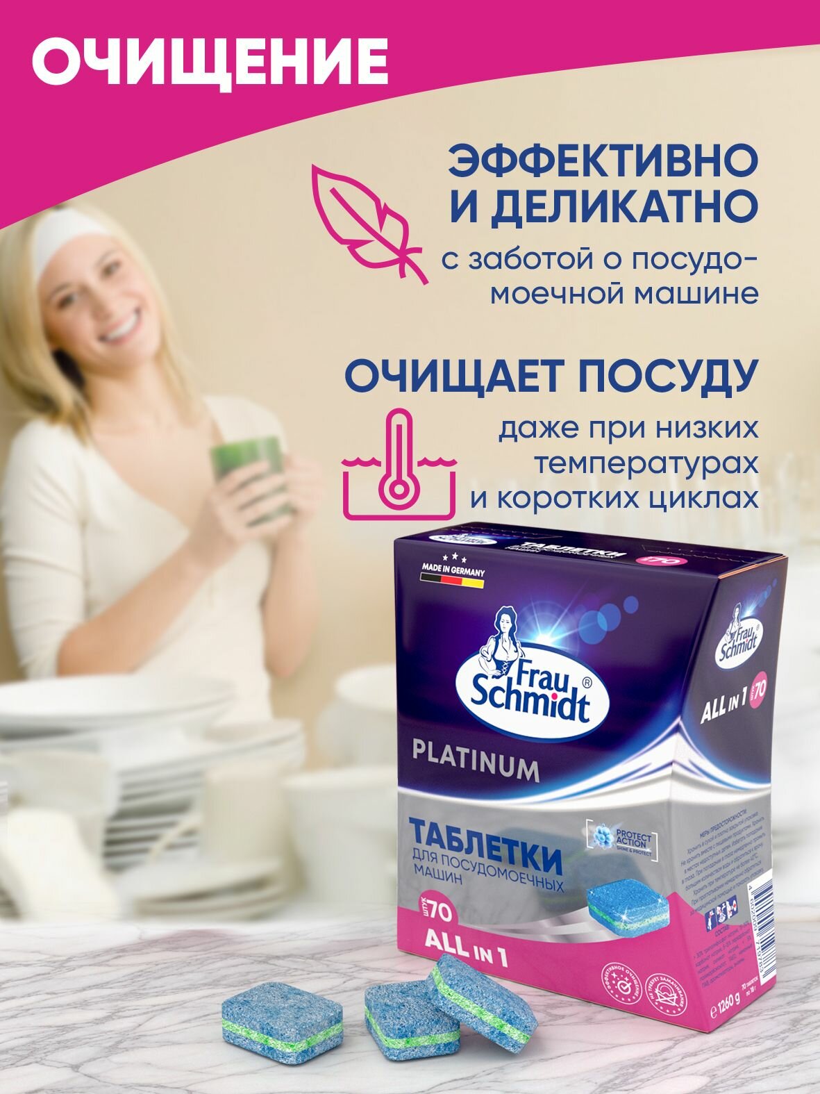 Купить Таблетки для посудомоечной машины Frau Schmidt Platinum. Средство для мытья посуды 70 таблеток