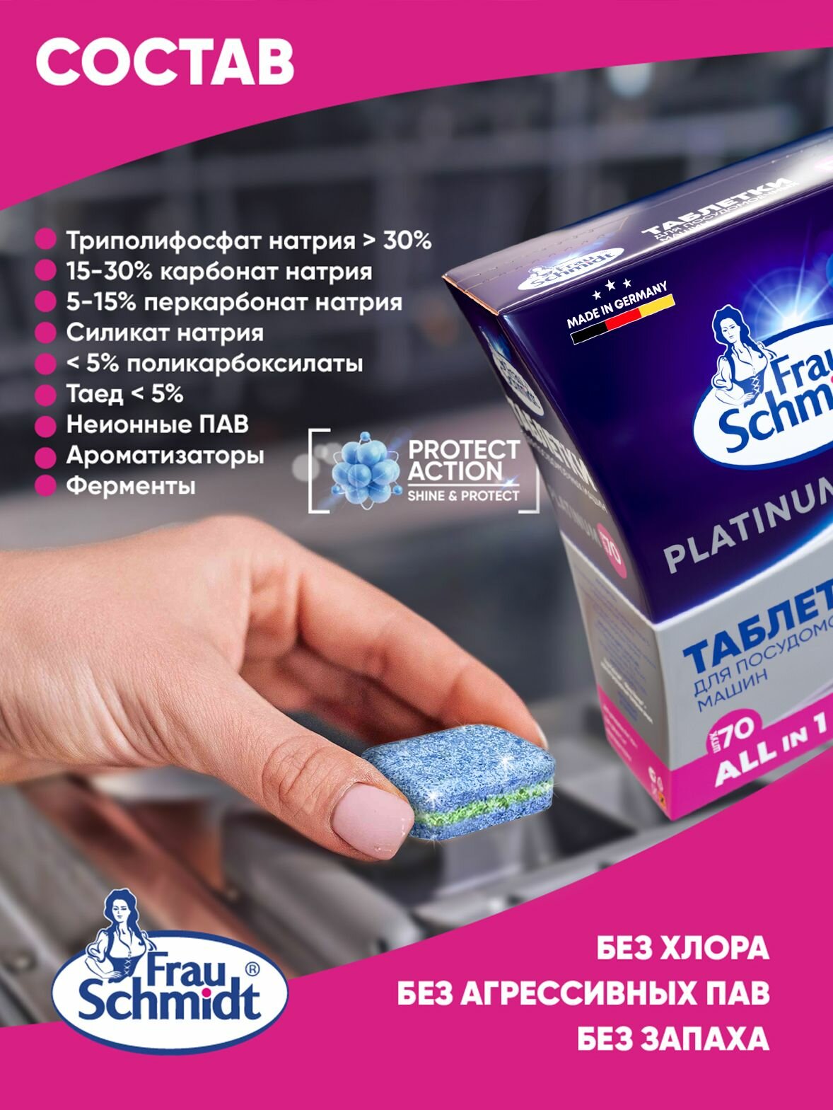 Таблетки для посудомоечной машины Frau Schmidt Platinum. Средство для мытья посуды 110 таблеток