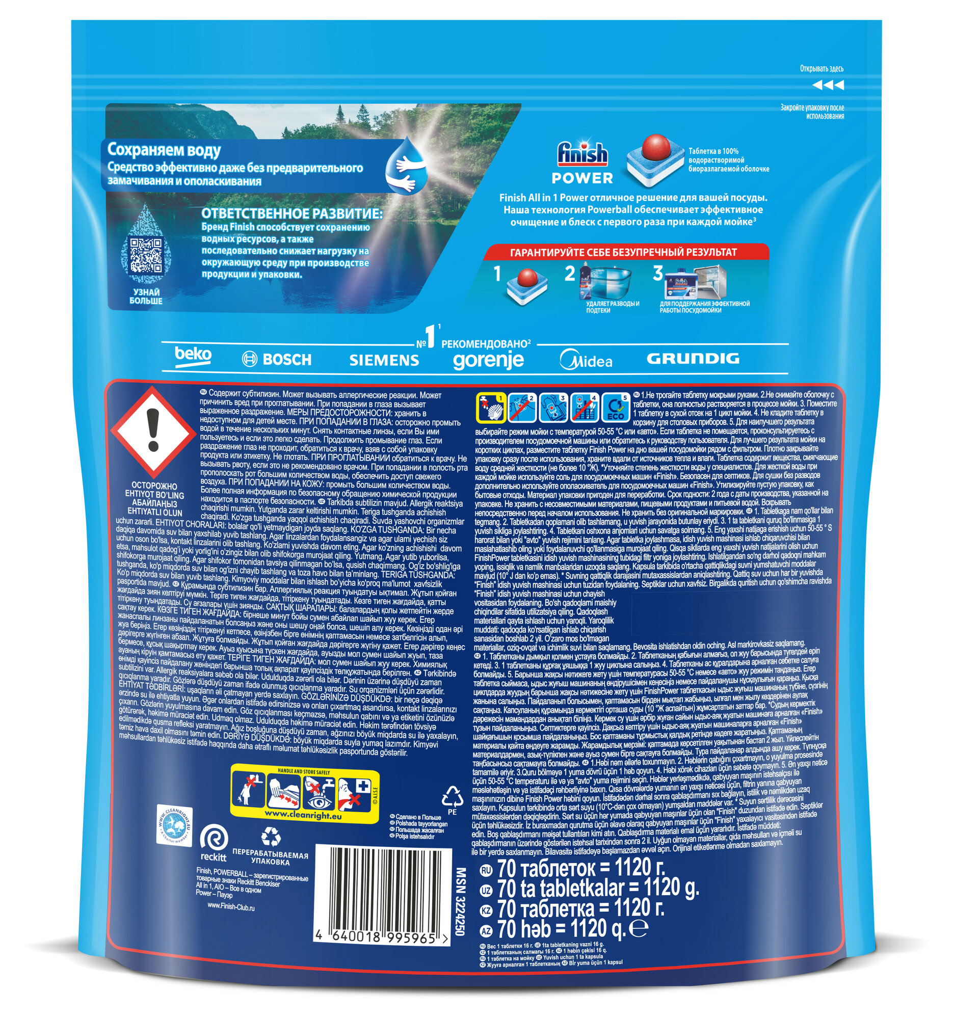 Таблетки для мытья посуды Finish Power для посудомоечной машины, 70 шт. интересное: