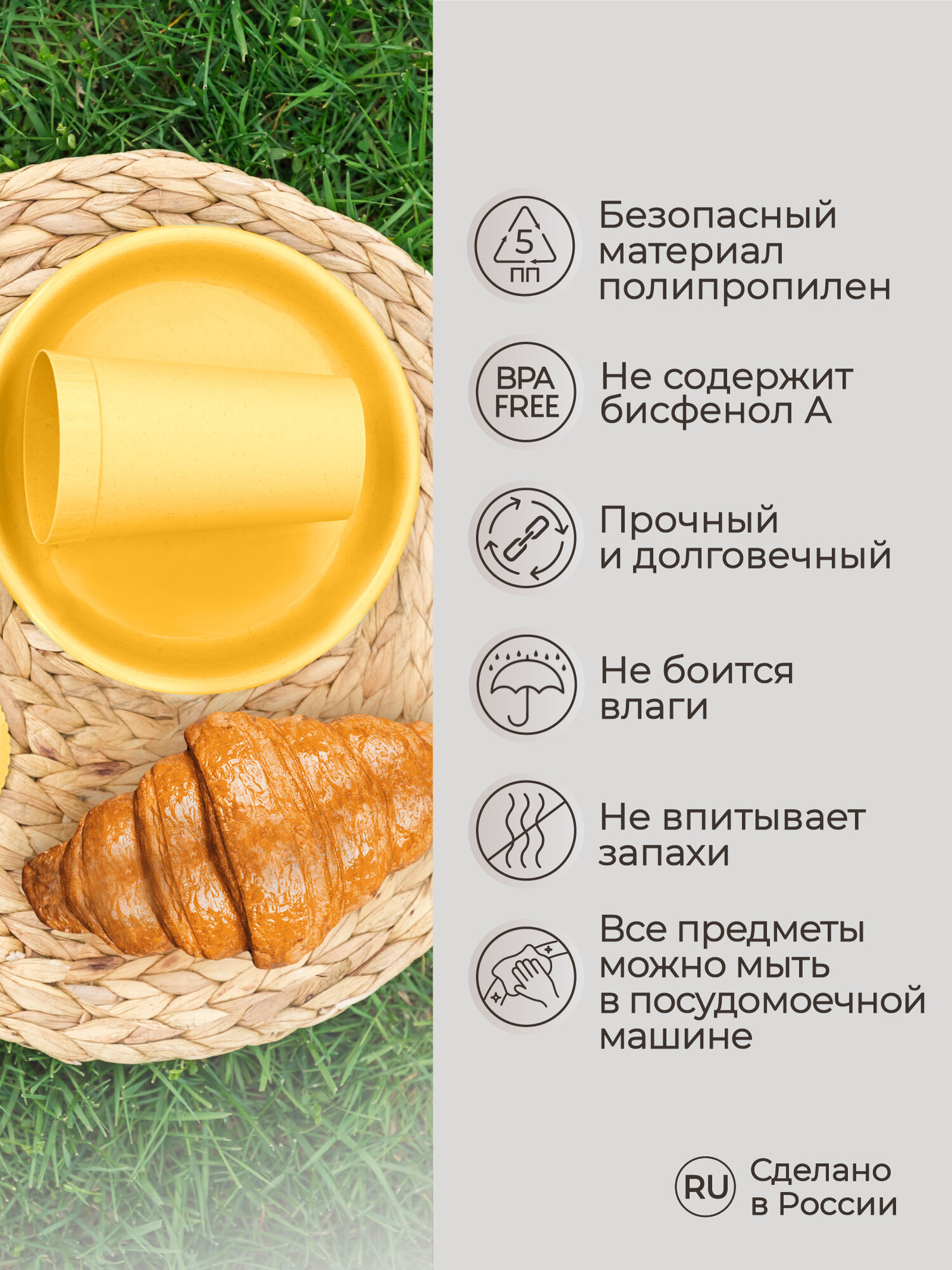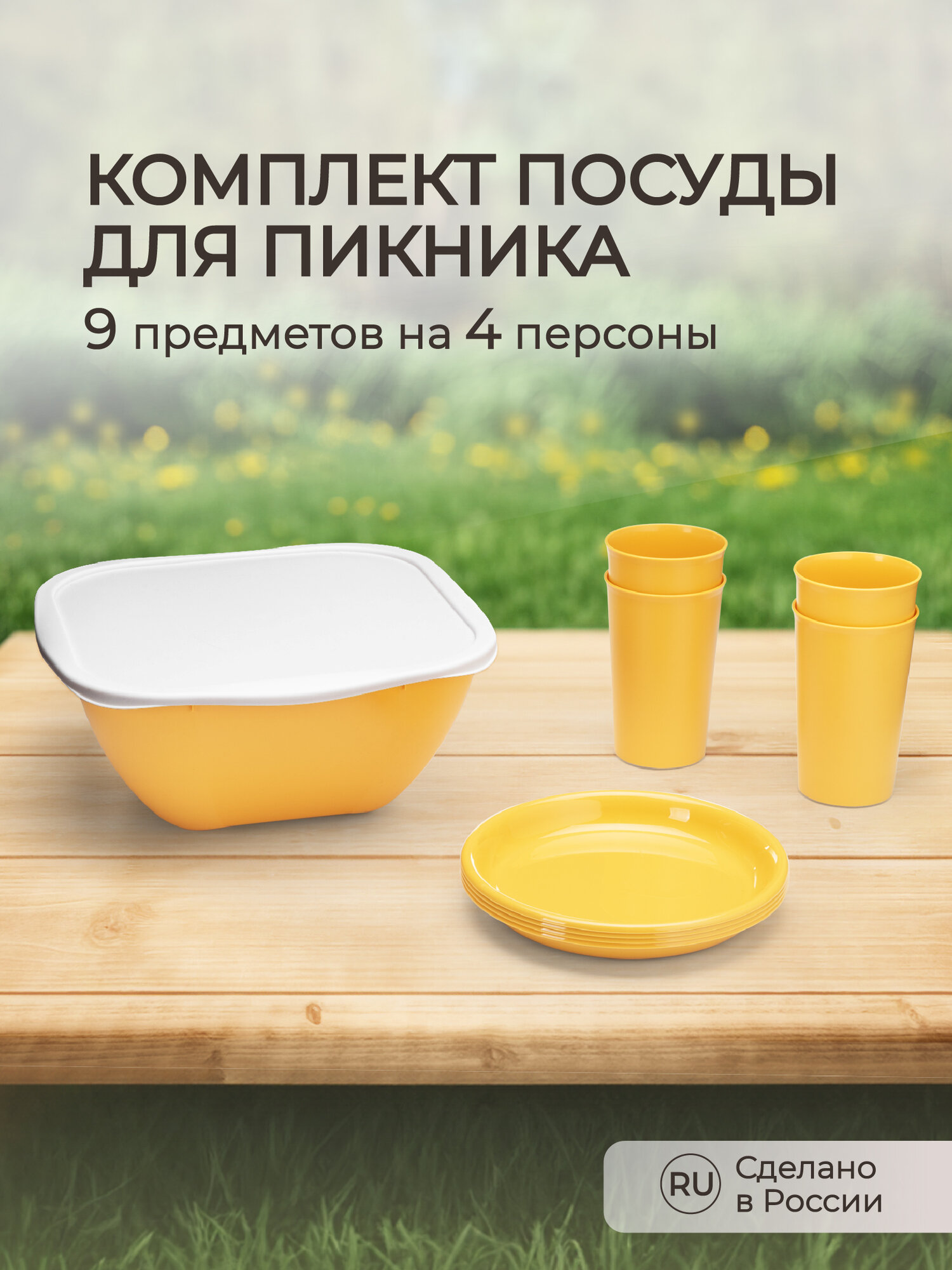 Комплект для пикника, 9 предметов на 4 персоны, Phibo, желтый интересное:
