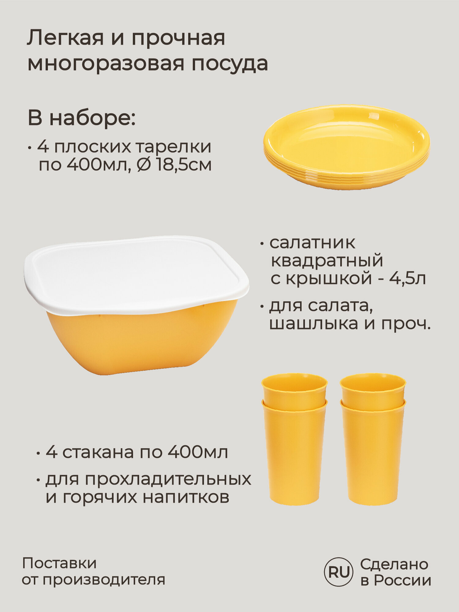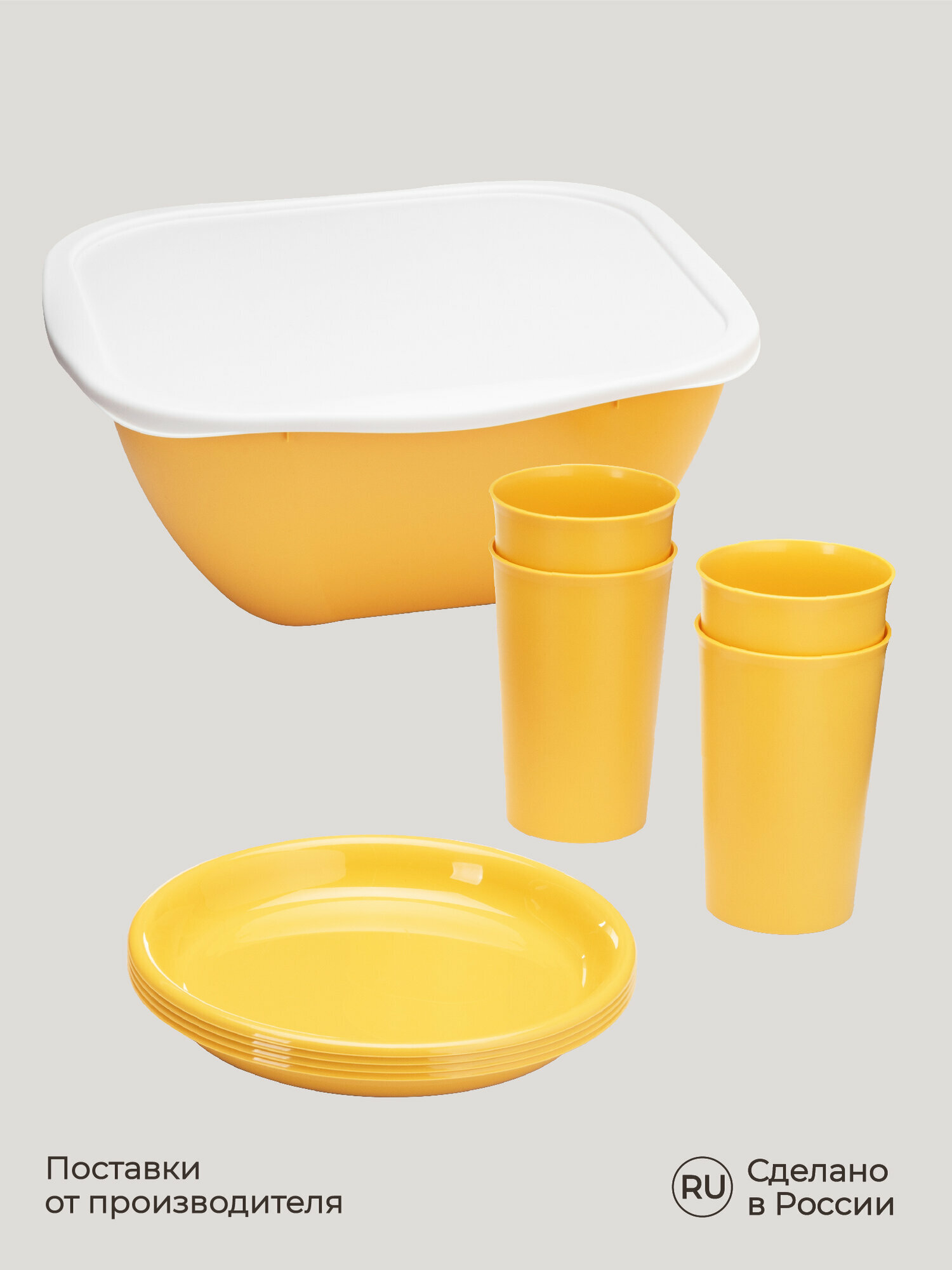 Комплект для пикника, 19 предметов на 4 персоны (Желтый)
