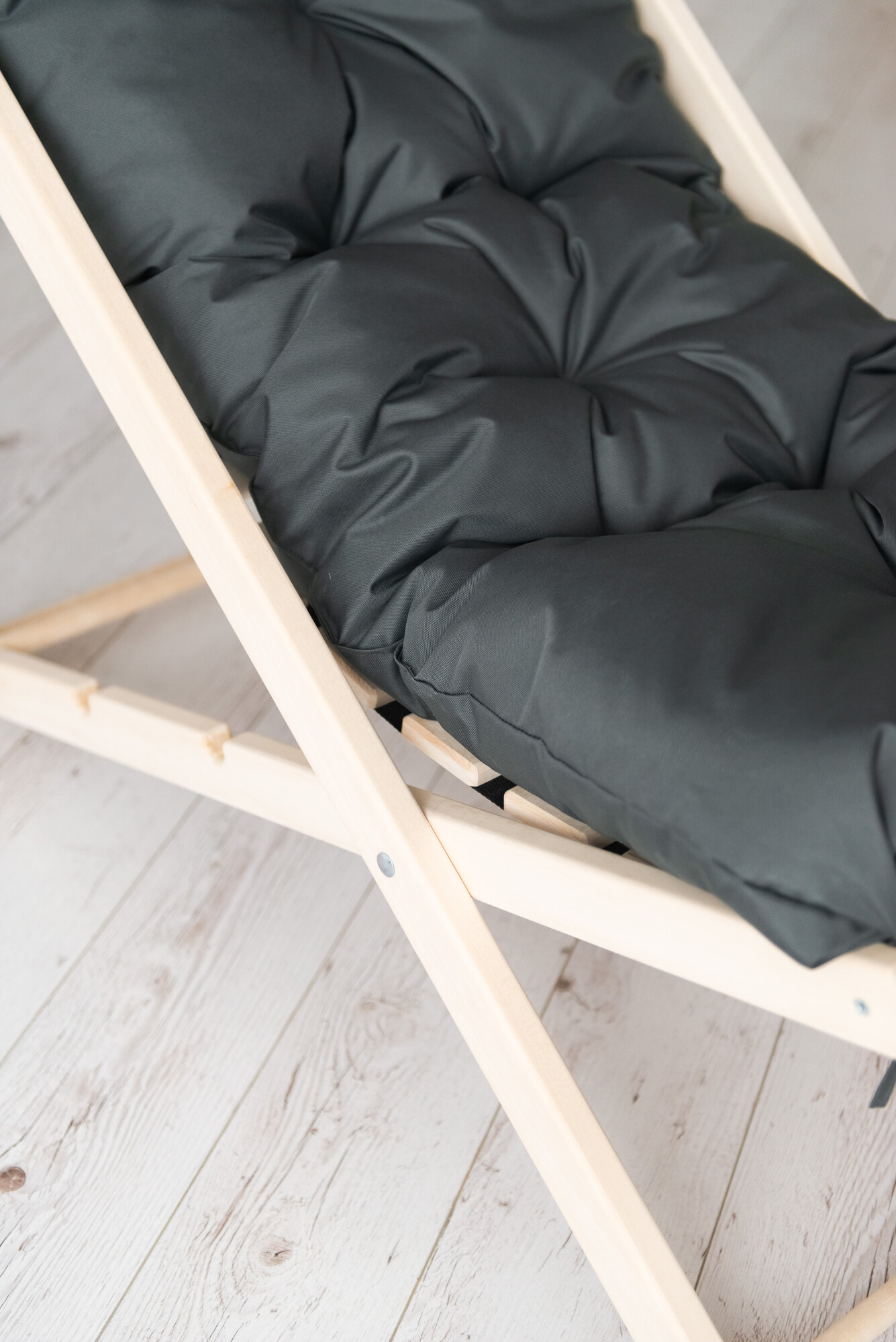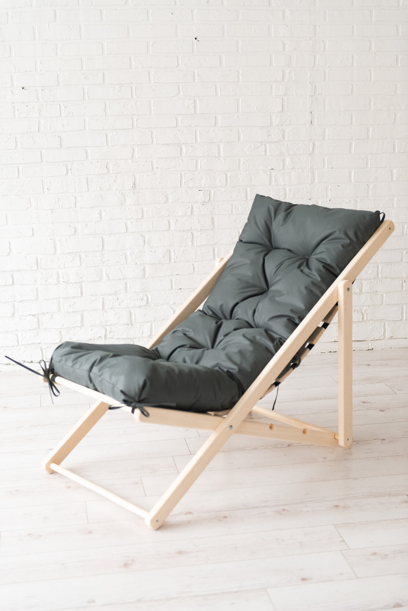 Комплект из двух кресел-шезлонгов без покрытия с серыми матрасами и чайным столиком интересное: