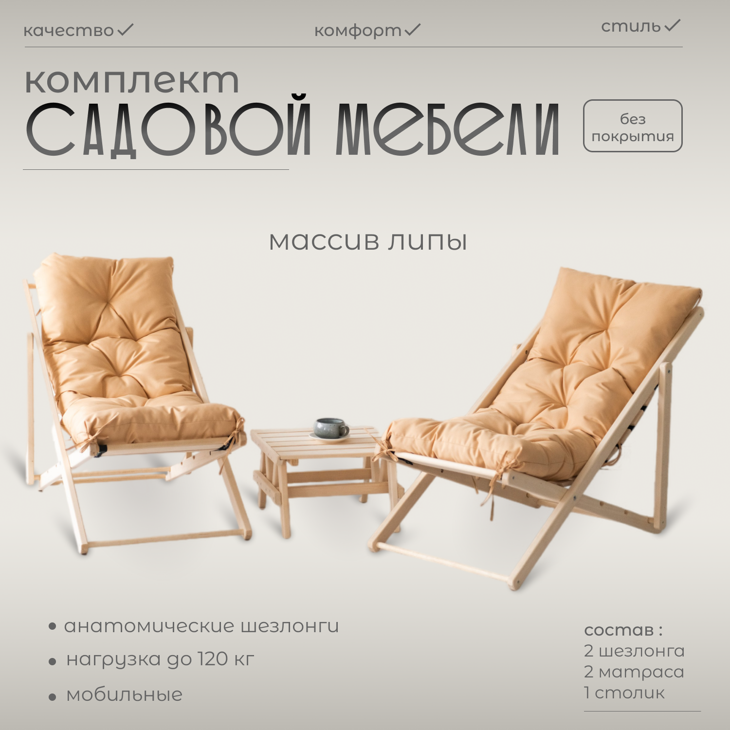 Комплект из двух кресел-шезлонгов без покрытия с бежевыми матрасами и чайным столиком интересное: