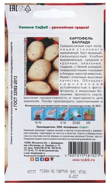 Семена картофель баллада / СеДеК / в упаковке 0,02 гр.