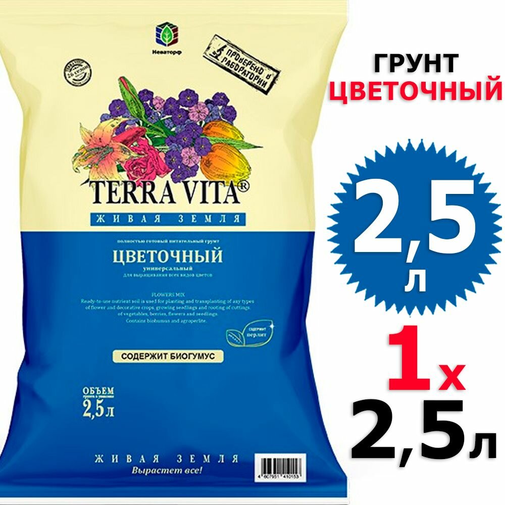Купить Грунт цветочный 2,5л., Terra Vita, живая земля