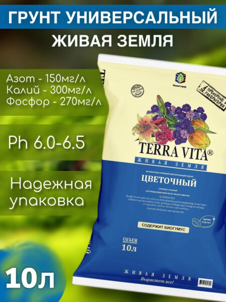 Грунт Живая Земля Terra vita цветочный 10л