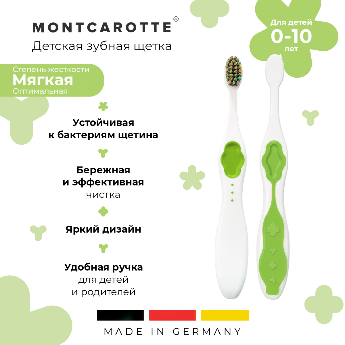 СохранитьДетская Зубная щетка MontCarotte Зеленая soft мягкая для детей от 0+ интересное: