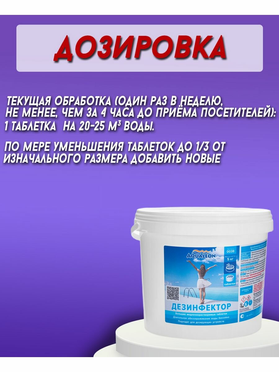 | Дополнительная информация | Таблетки без капсулы или скиммера в бассейн не бросать – опасность обесцвечивания материалов бассейна! |