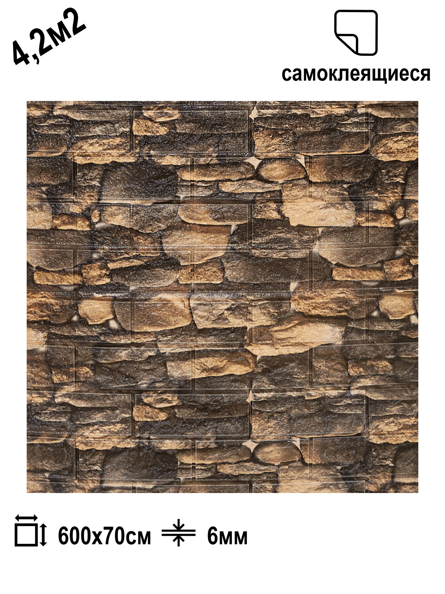 Самоклеящаяся ПВХ 3D-панель для стен в рулоне LAKO DECOR, Каменная кладка 24, 70x600см, толщина 6мм