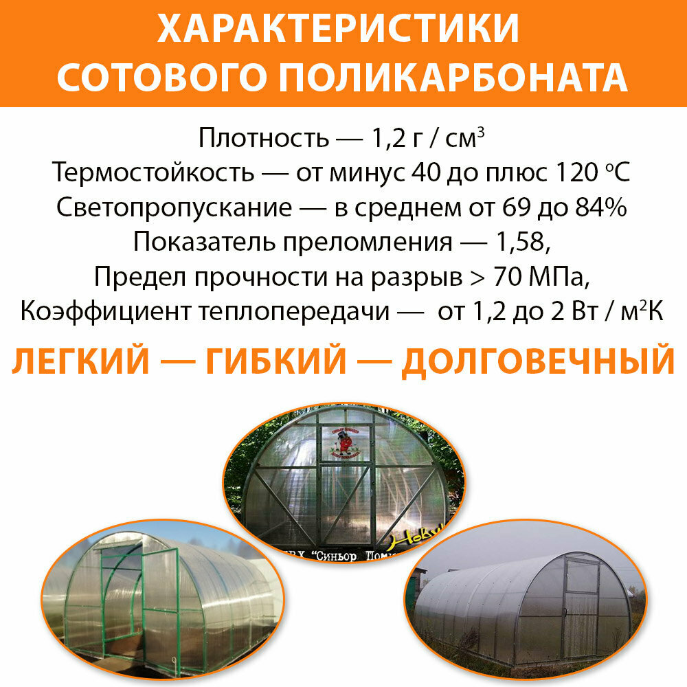 Сотовый поликарбонат прозрачный 4 мм, 6 метров