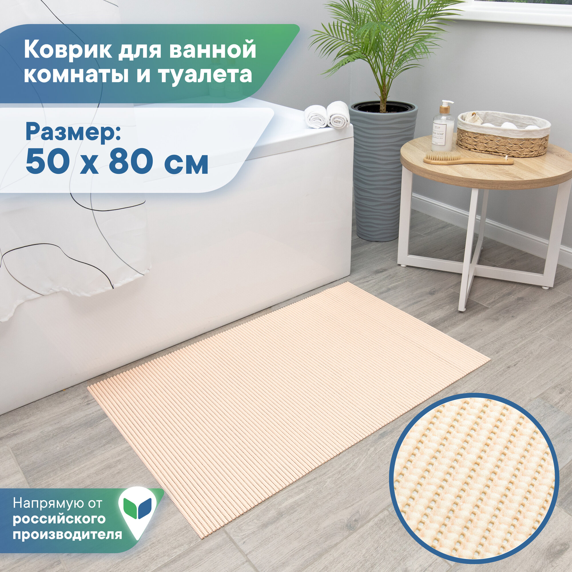 Коврик для ванны душа и туалета VILINA из вспененного ПВХ противоскользящий мягкий безворсовый 50х80 с рисунком V13 бежевый