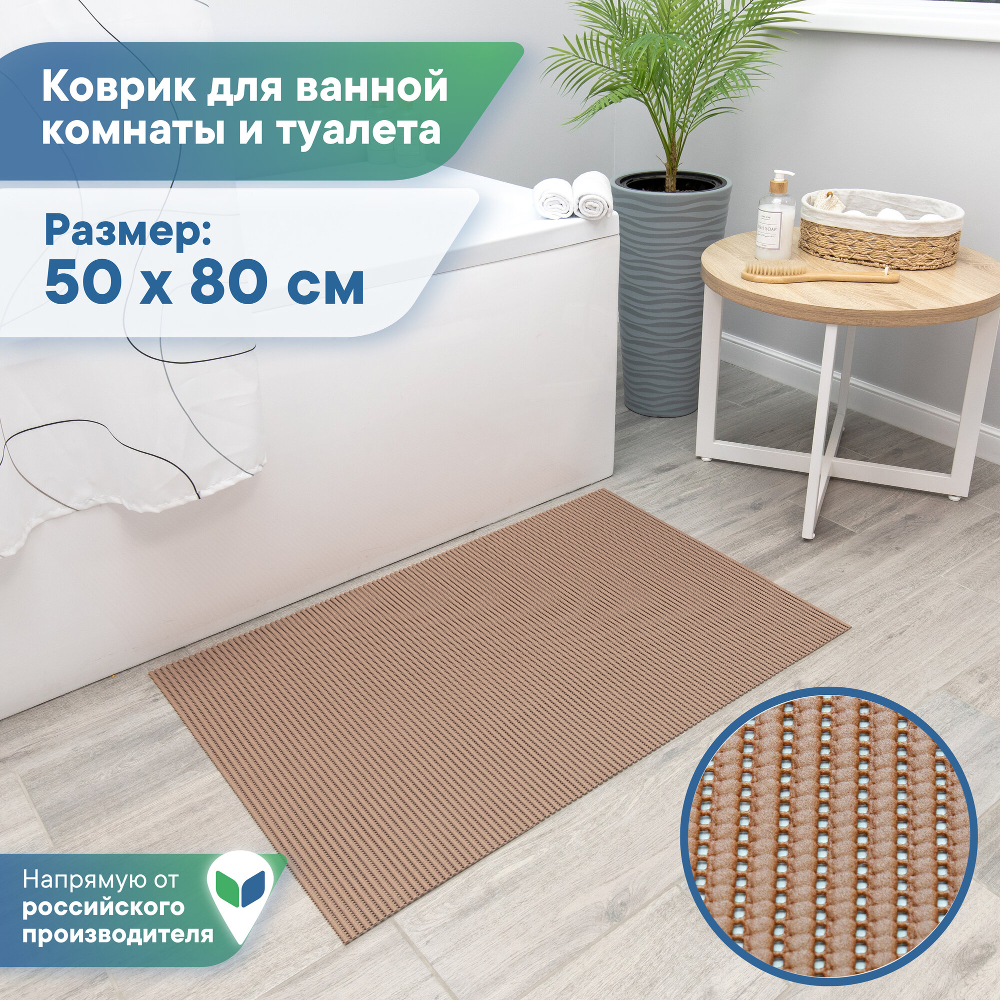 Коврик для ванны душа и туалета VILINA из вспененного ПВХ противоскользящий мягкий безворсовый 50х80 с рисунком V13 бежевый