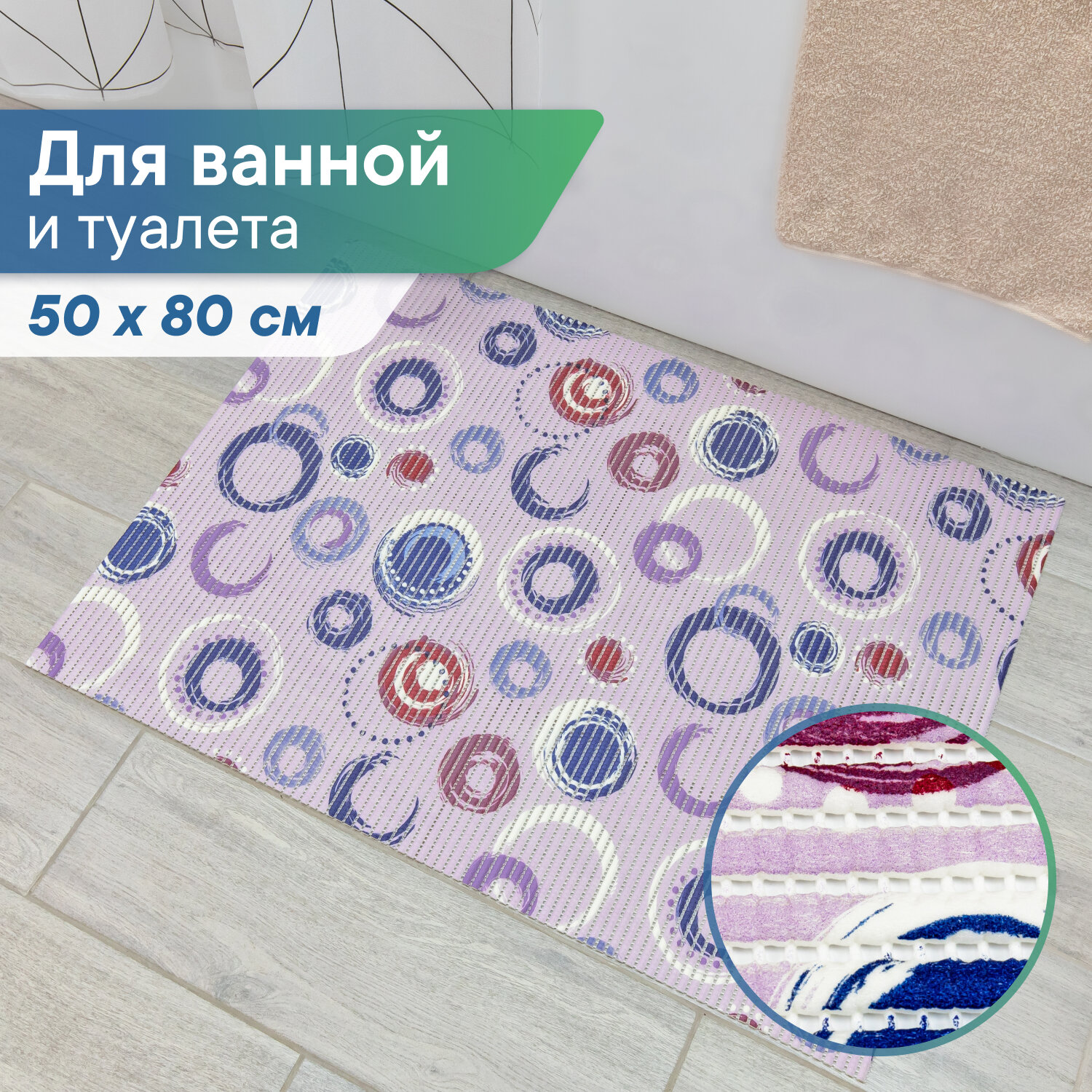 Коврик с рисунком для ванной комнаты и туалета 50х80см VILINA из вспененного ПВХ безворсовый противоскользящий мягкий V39-lilac