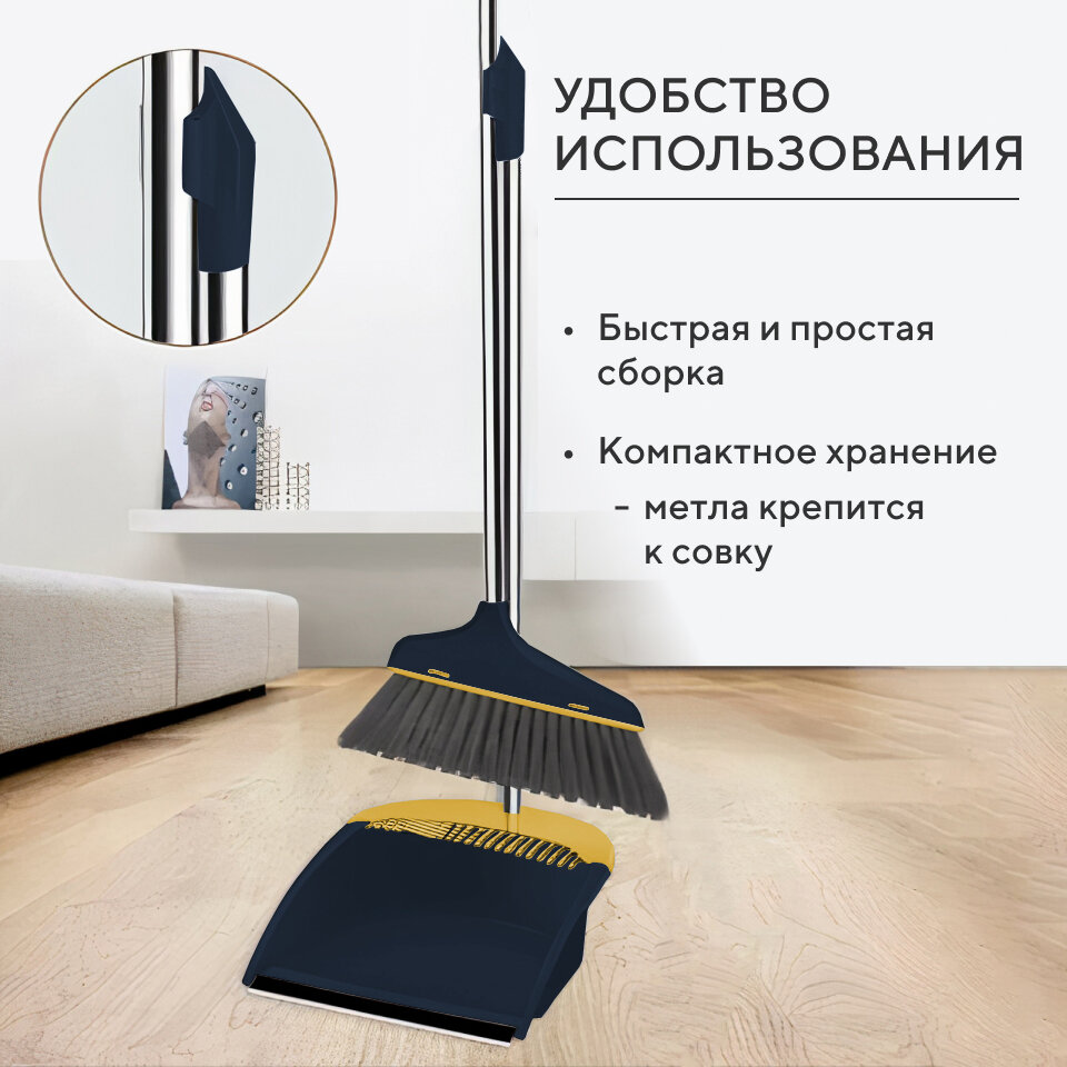 Купить Щетка для уборки пола с ручкой и совком, длинная щетка для уборки, набор для уборки Hausland, синий