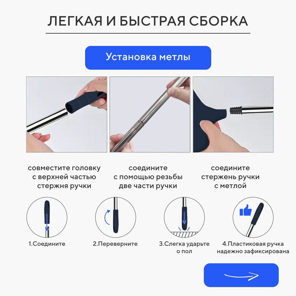 СохранитьЩетка для уборки пола с ручкой и совком, длинная щетка для уборки, набор для уборки Hausland, синий интересное: