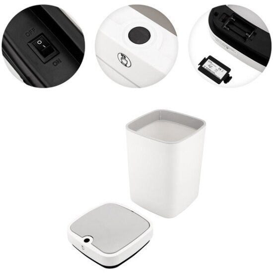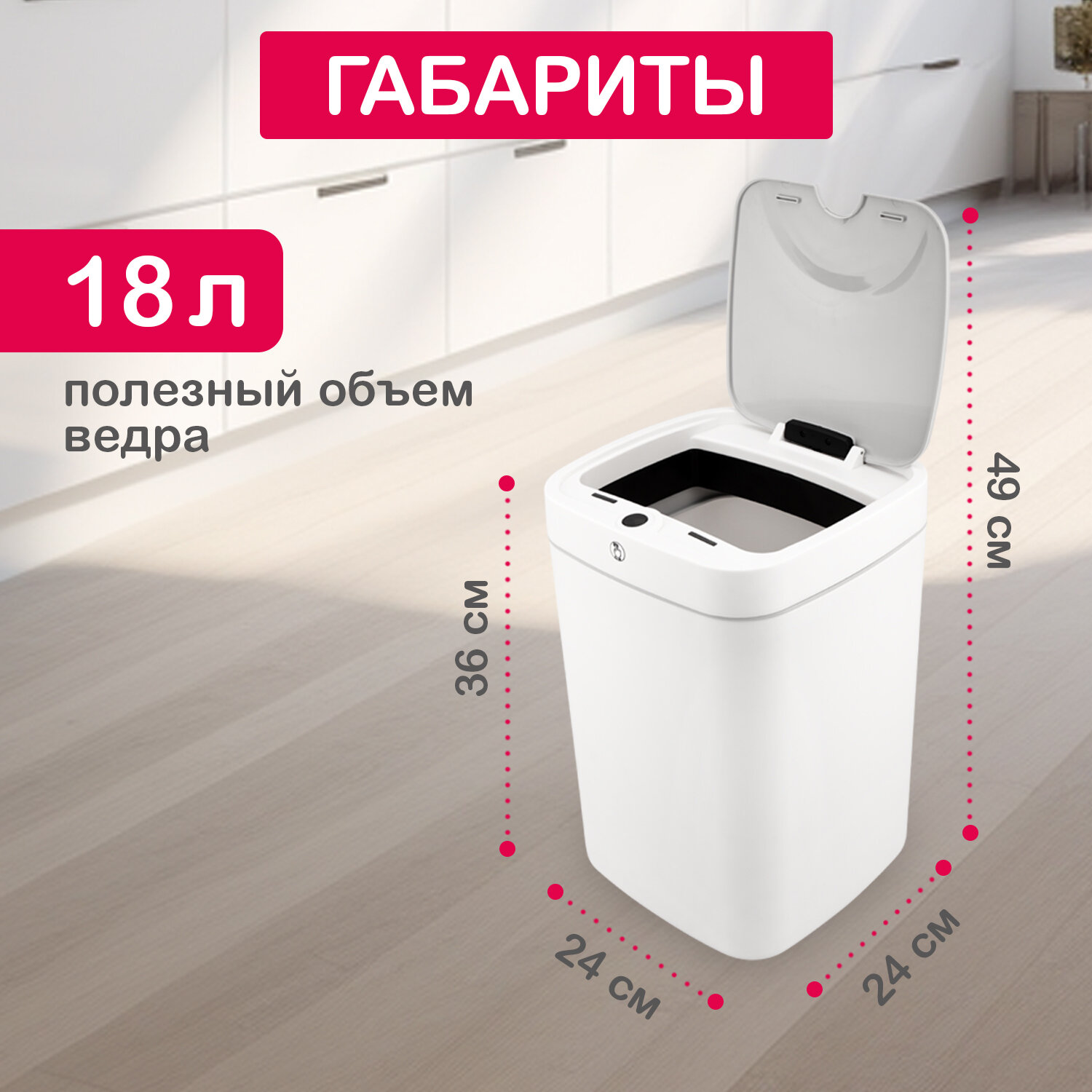 Ведро-контейнер сенсорное мусорное автоматическое для кухни/туалета/сбора отходов/дома/офиса с крышкой/индикатором разряда батареи и датчиком движения, объем 12 литров
