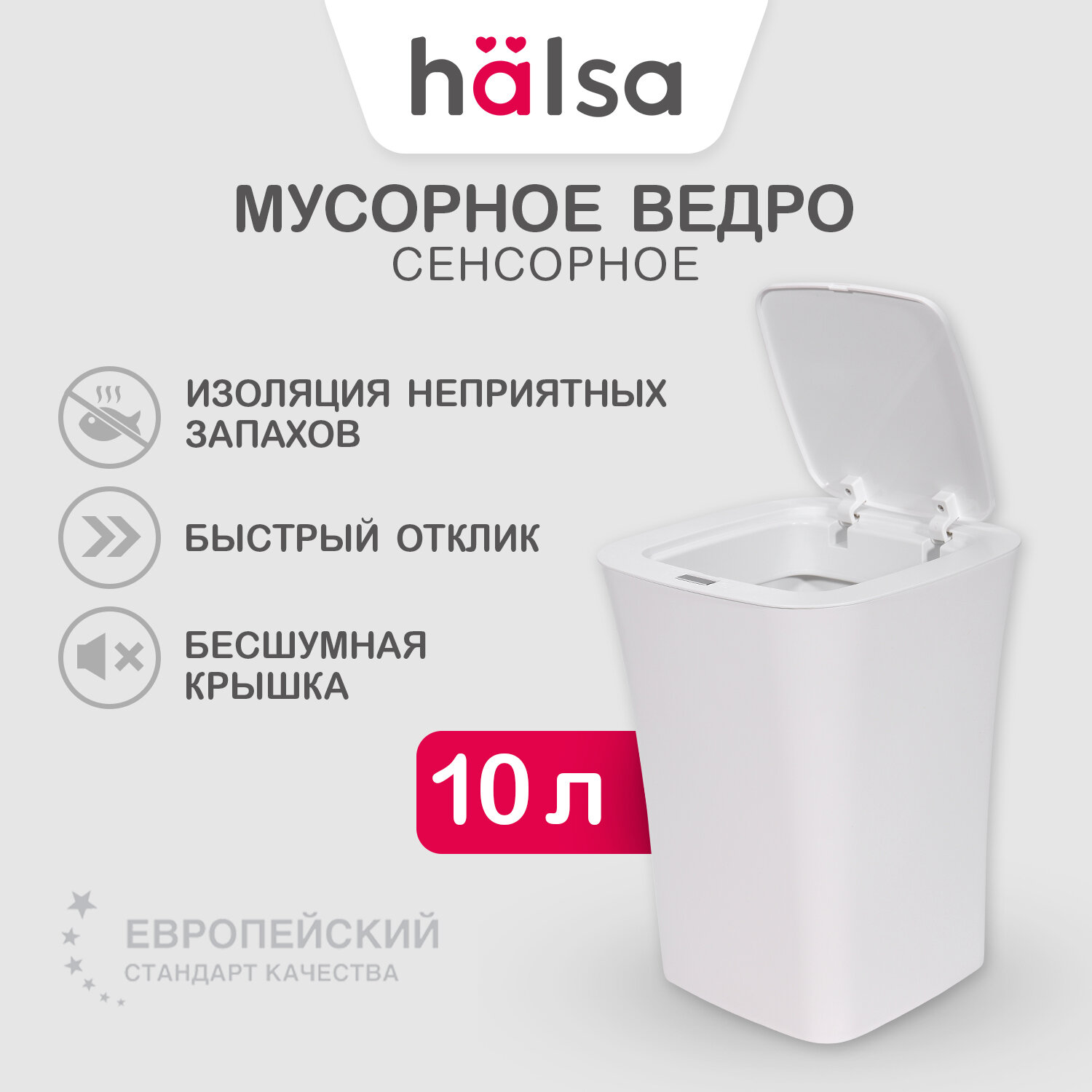 Умное мусорное ведро Halsa с сенсорной крышкой HSL-10-29S 10 литров HSL-C-102