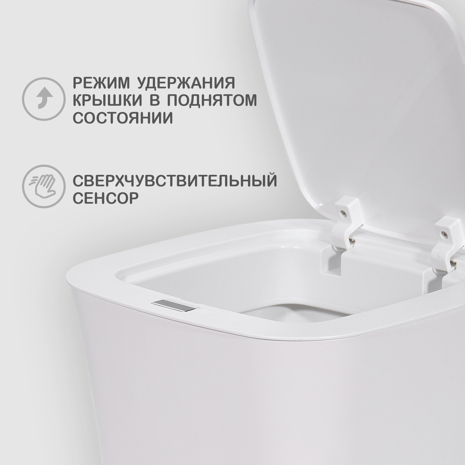 Ведро-контейнер сенсорное мусорное автоматическое для кухни/туалета/сбора отходов/дома/офиса с крышкой/индикатором разряда батареи и датчиком движения, объем 12 литров