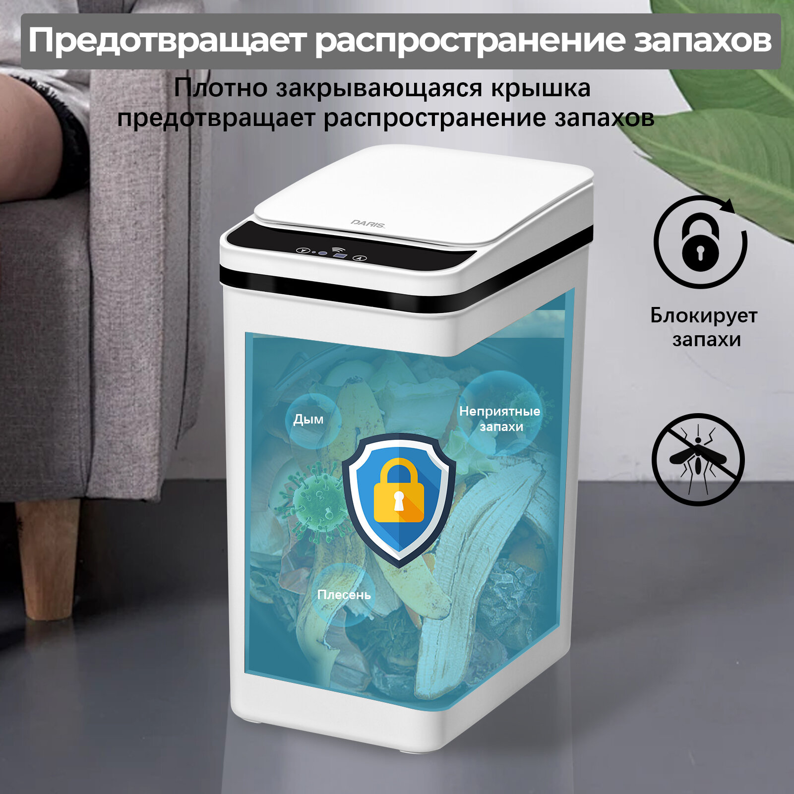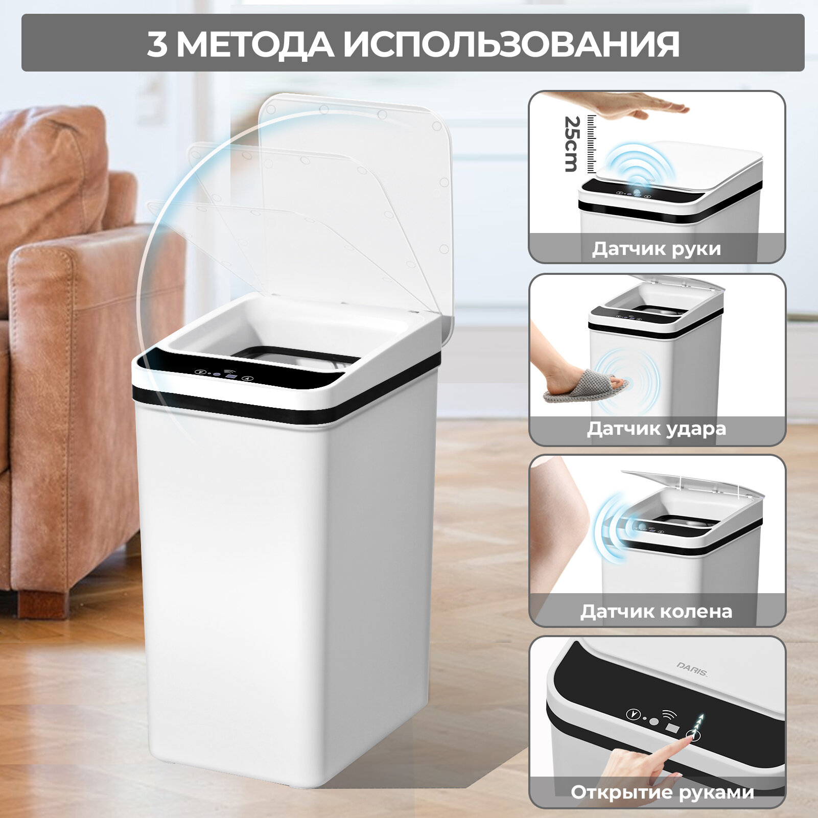 Мусорное ведро DARIS с автоматическим датчиком, на батарейках, 12 л, белое