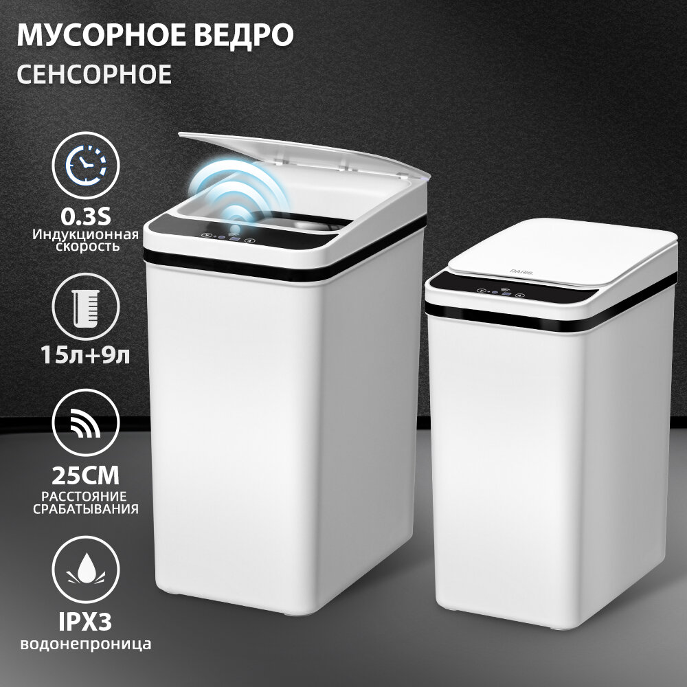 Сенсорное мусорное ведро, 2 шт, 9л+15л, умное кухонное мусорное ведро