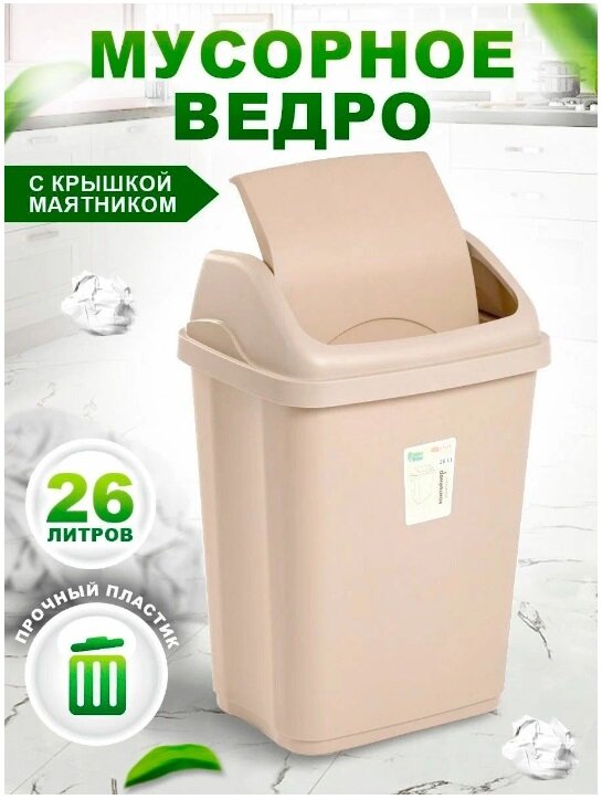 СохранитьКонтейнер для мусора Ultra с плавающей крышкой Мусорное ведро 26 л. цвет -ванильно-бежевый . интересное: