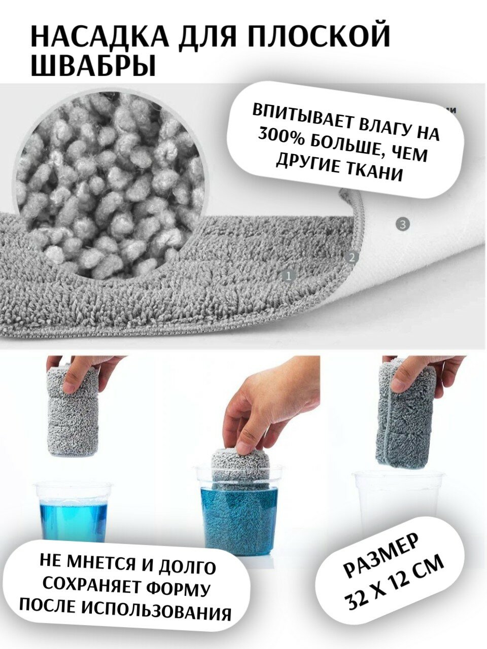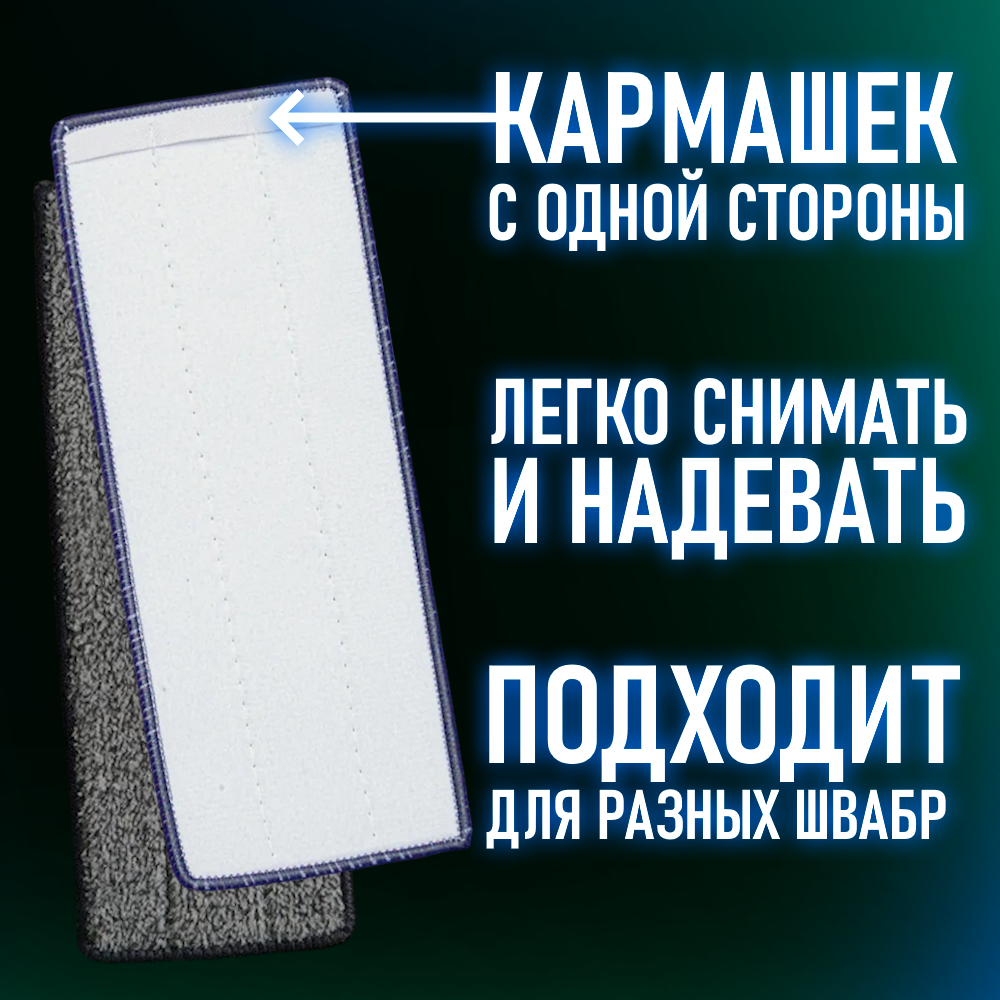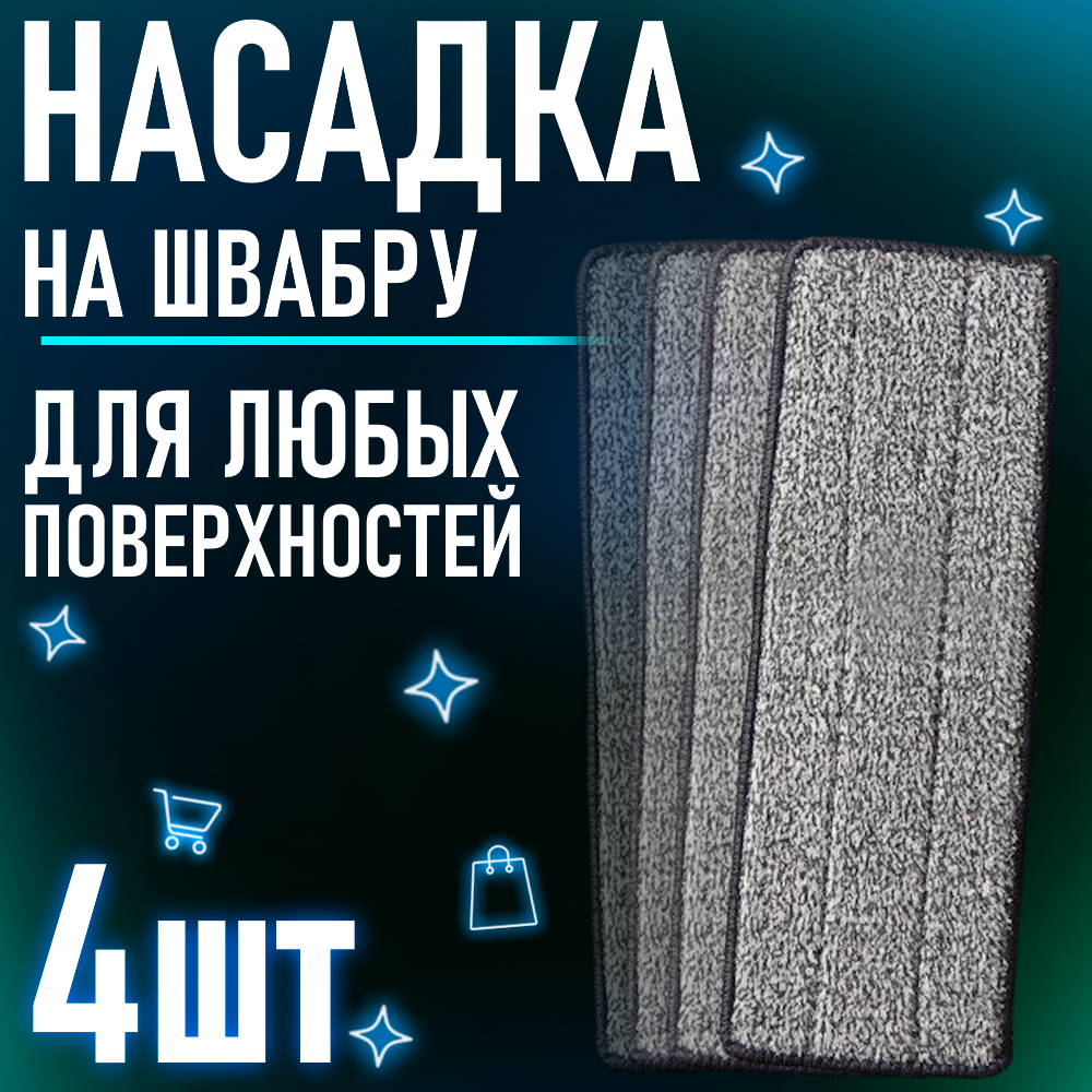 Сменные насадки из микрофибры для плоской швабры, 4 штуки, с одним карманом - держателем (комплект 4 шт)