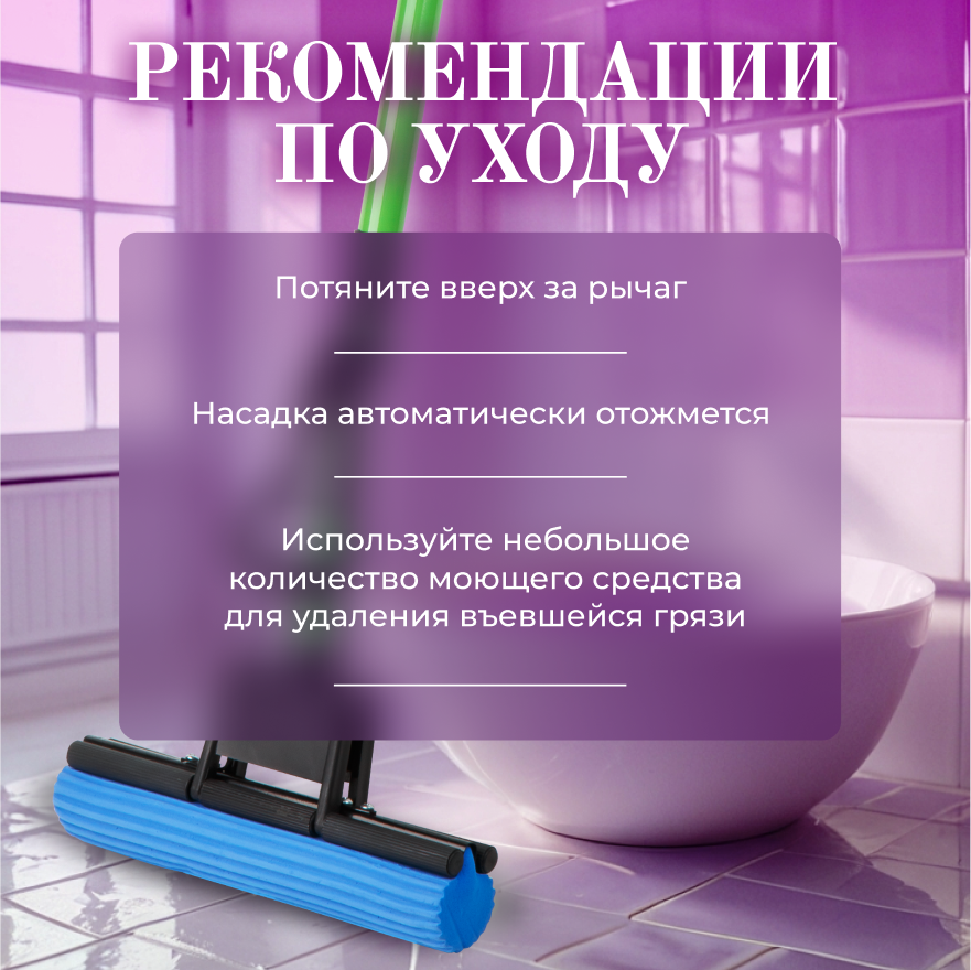 Швабра отжимная, насадка ПВА губчатая 27см, ручка 115см телеск.