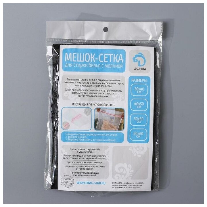 Мешок для стирки белья Доляна, 50×60 см, мелкая сетка, цвет белый
