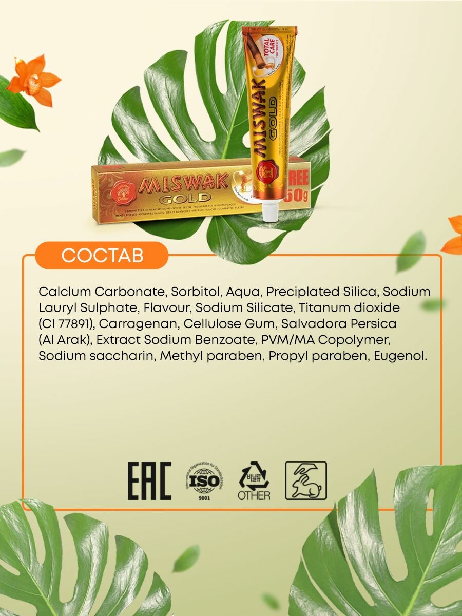 Зубная паста Dabur Miswak Gold, 170 мл, yellow